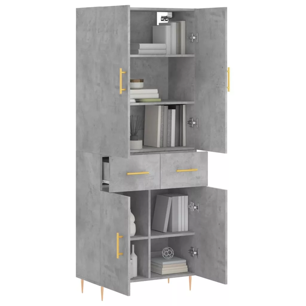 betonszürke szerelt fa magasszekrény 69,5 x 34 x 180 cm