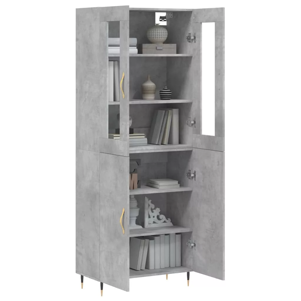 betonszürke szerelt fa magasszekrény 69,5 x 34 x 180 cm