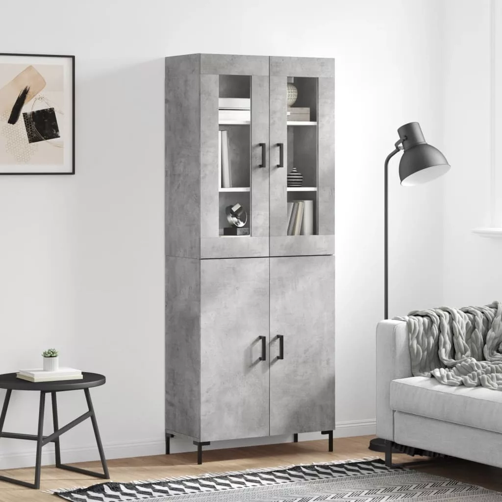 betonszürke szerelt fa magasszekrény 69,5 x 34 x 180 cm