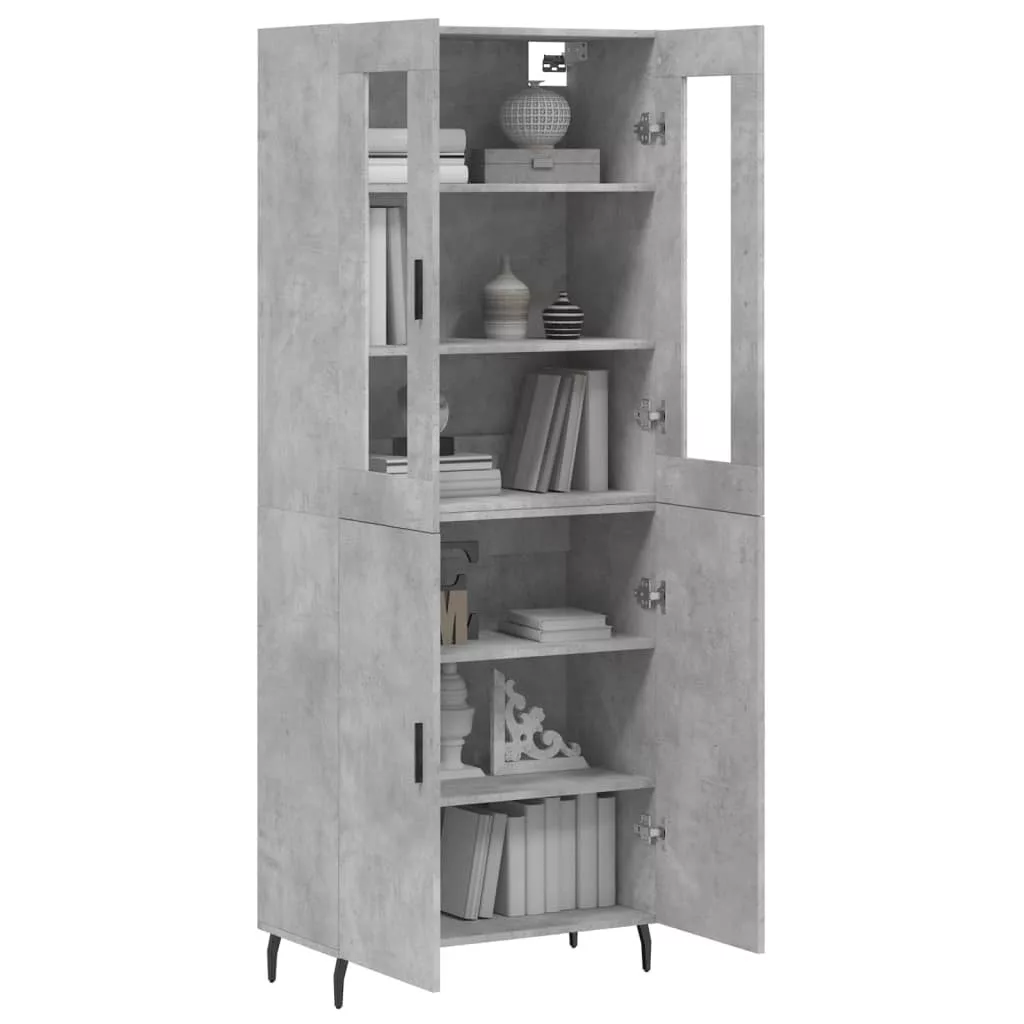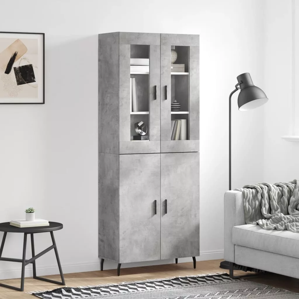 betonszürke szerelt fa magasszekrény 69,5 x 34 x 180 cm