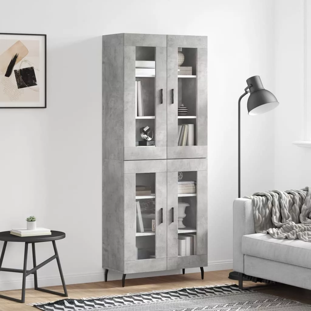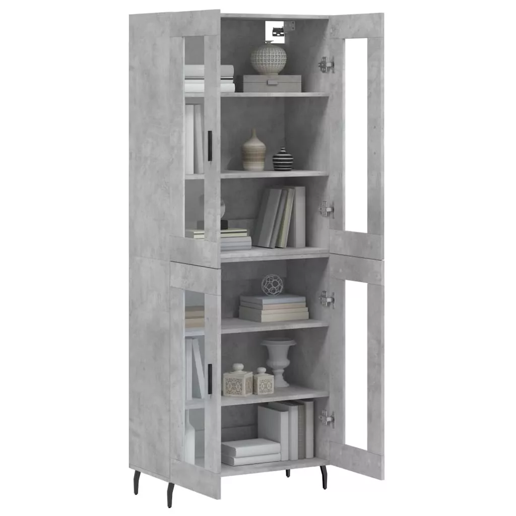 betonszürke szerelt fa magasszekrény 69,5 x 34 x 180 cm
