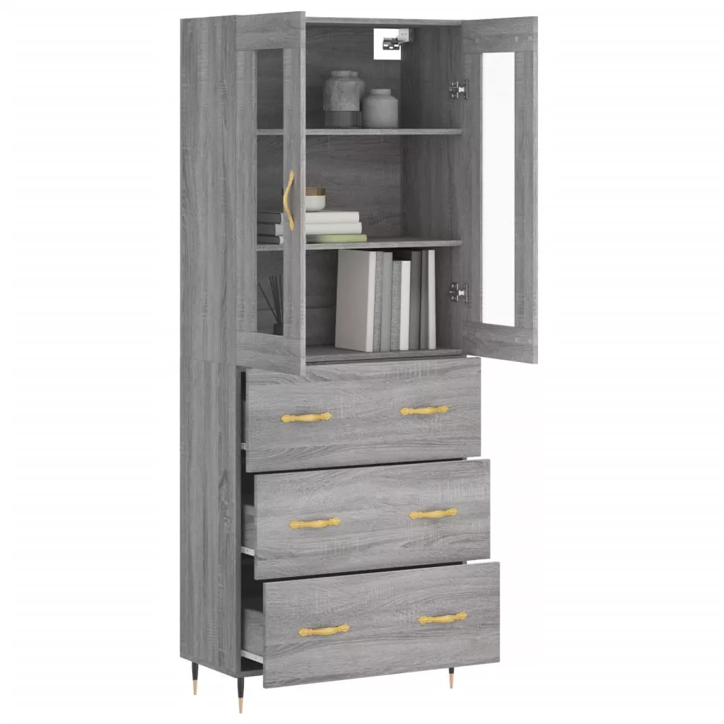 szürke sonoma szerelt fa magasszekrény 69,5 x 34 x 180 cm