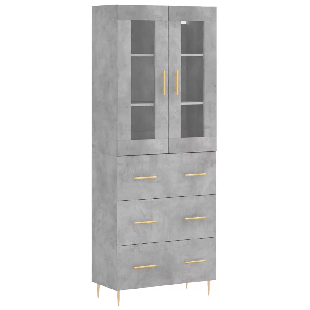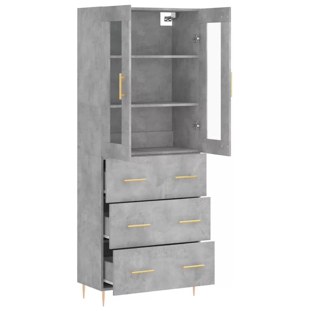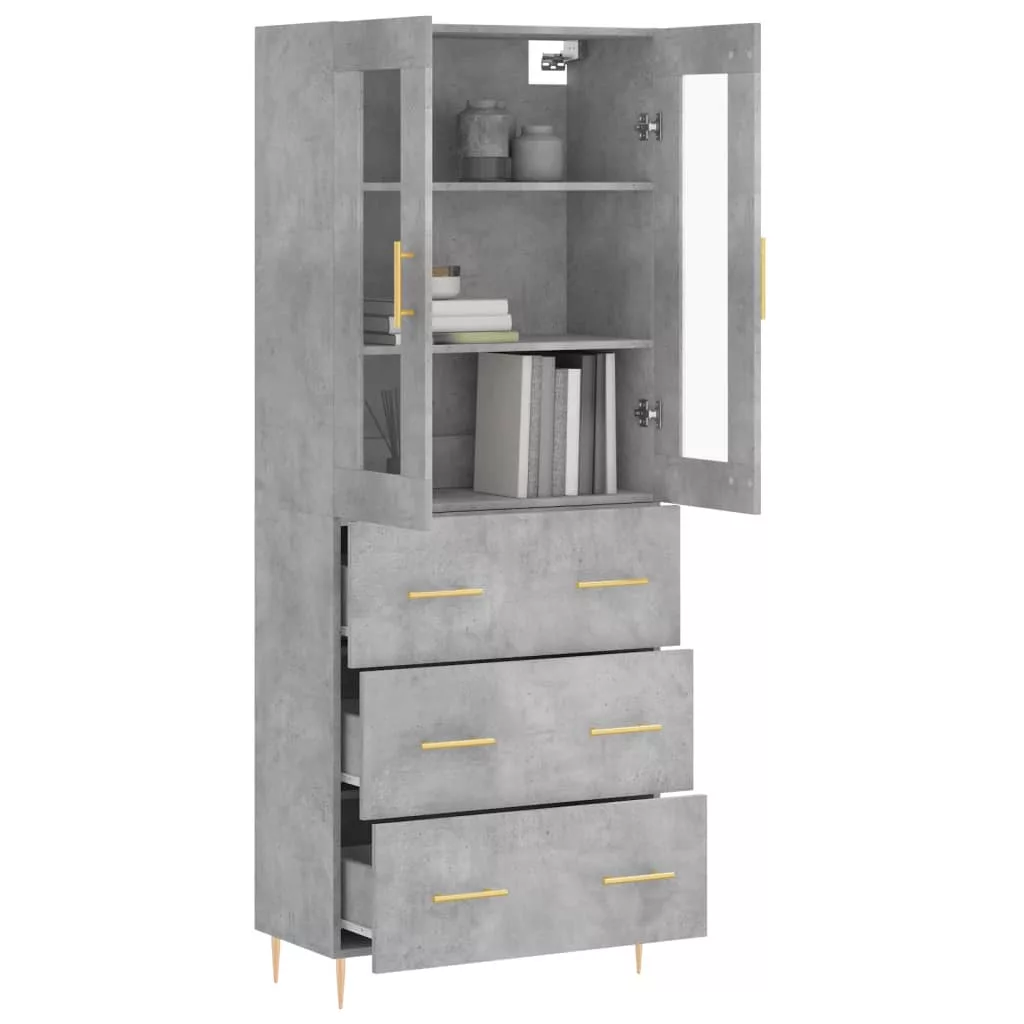 betonszürke szerelt fa magasszekrény 69,5 x 34 x 180 cm