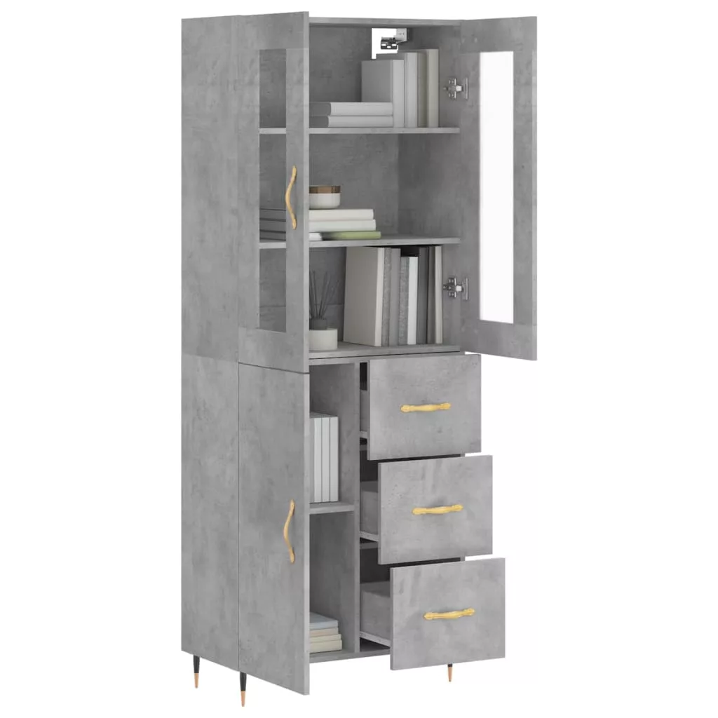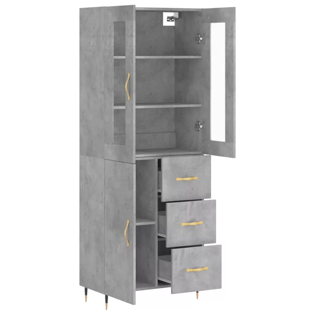 betonszürke szerelt fa magasszekrény 69,5 x 34 x 180 cm