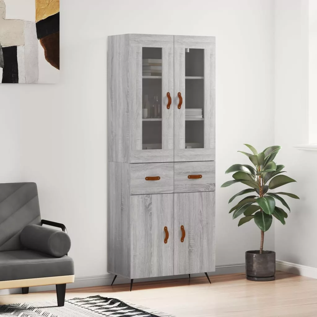 szürke sonoma szerelt fa magasszekrény 69,5 x 34 x 180 cm