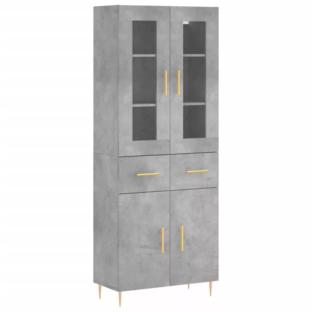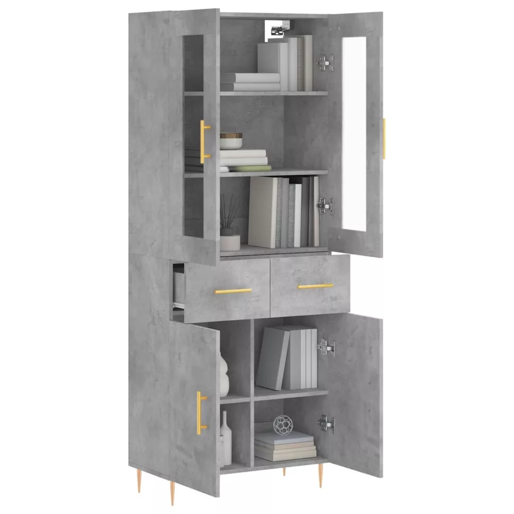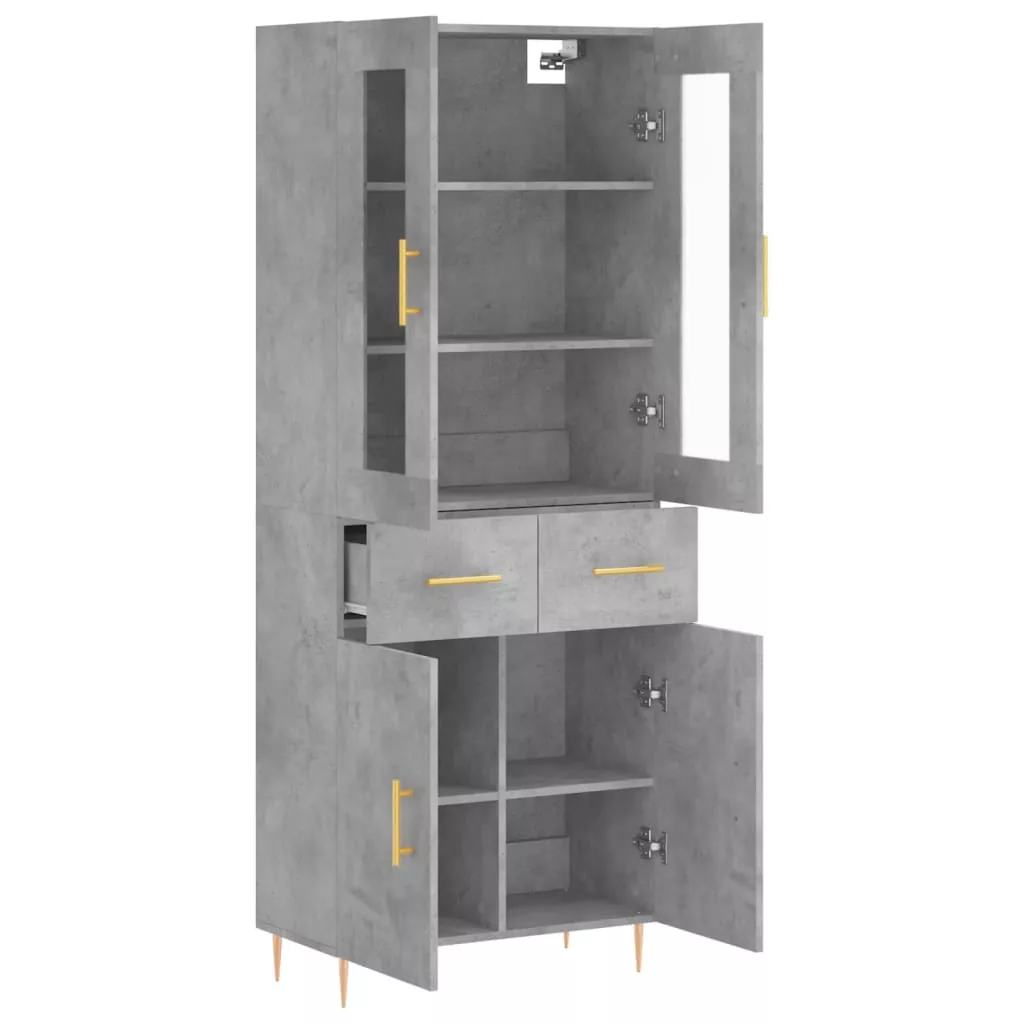 betonszürke szerelt fa magasszekrény 69,5 x 34 x 180 cm