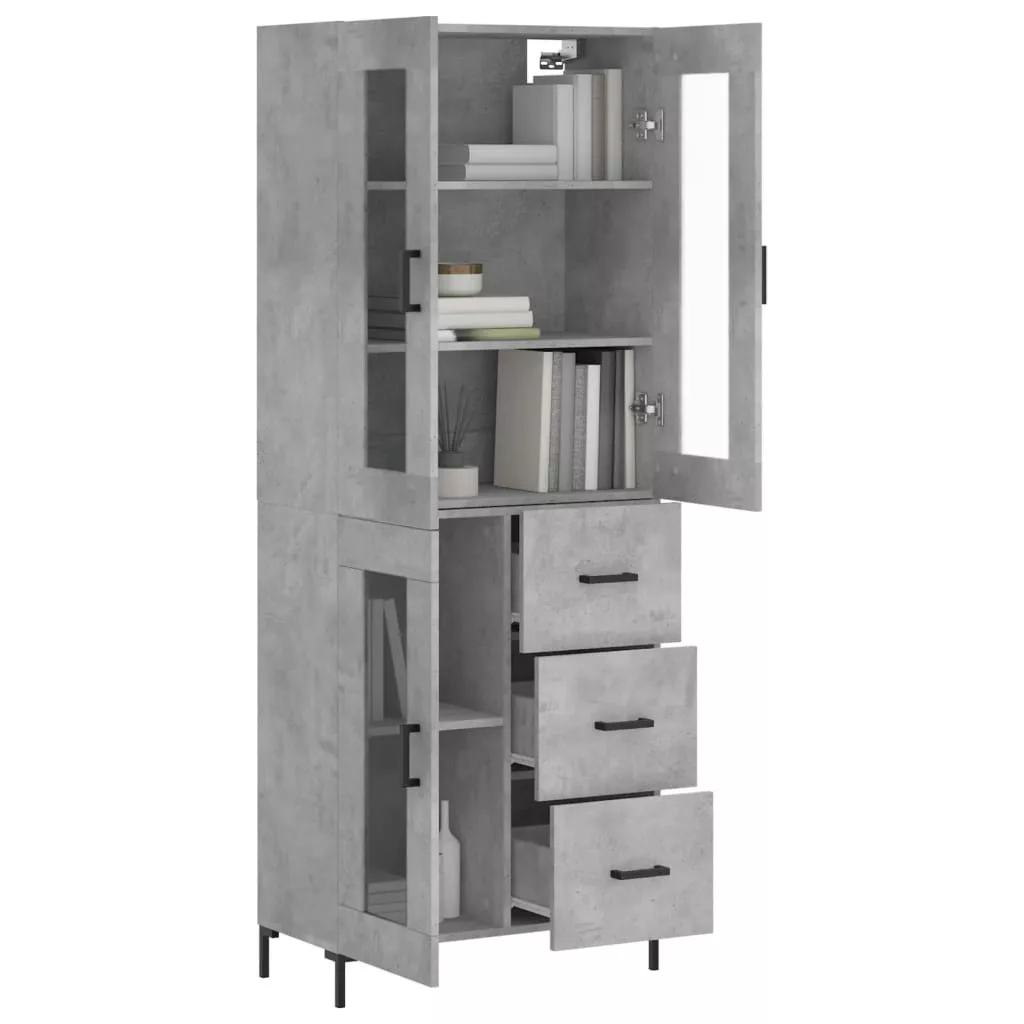 betonszürke szerelt fa magasszekrény 69,5 x 34 x 180 cm