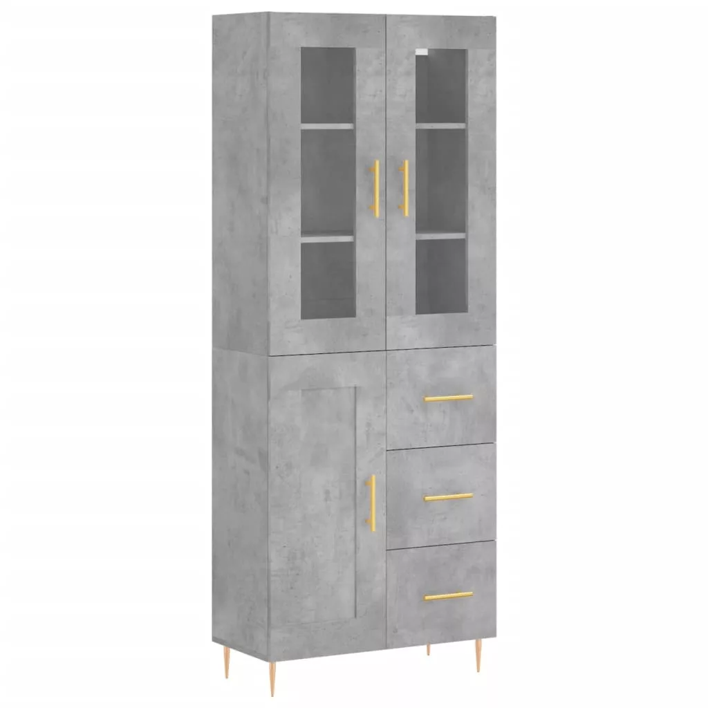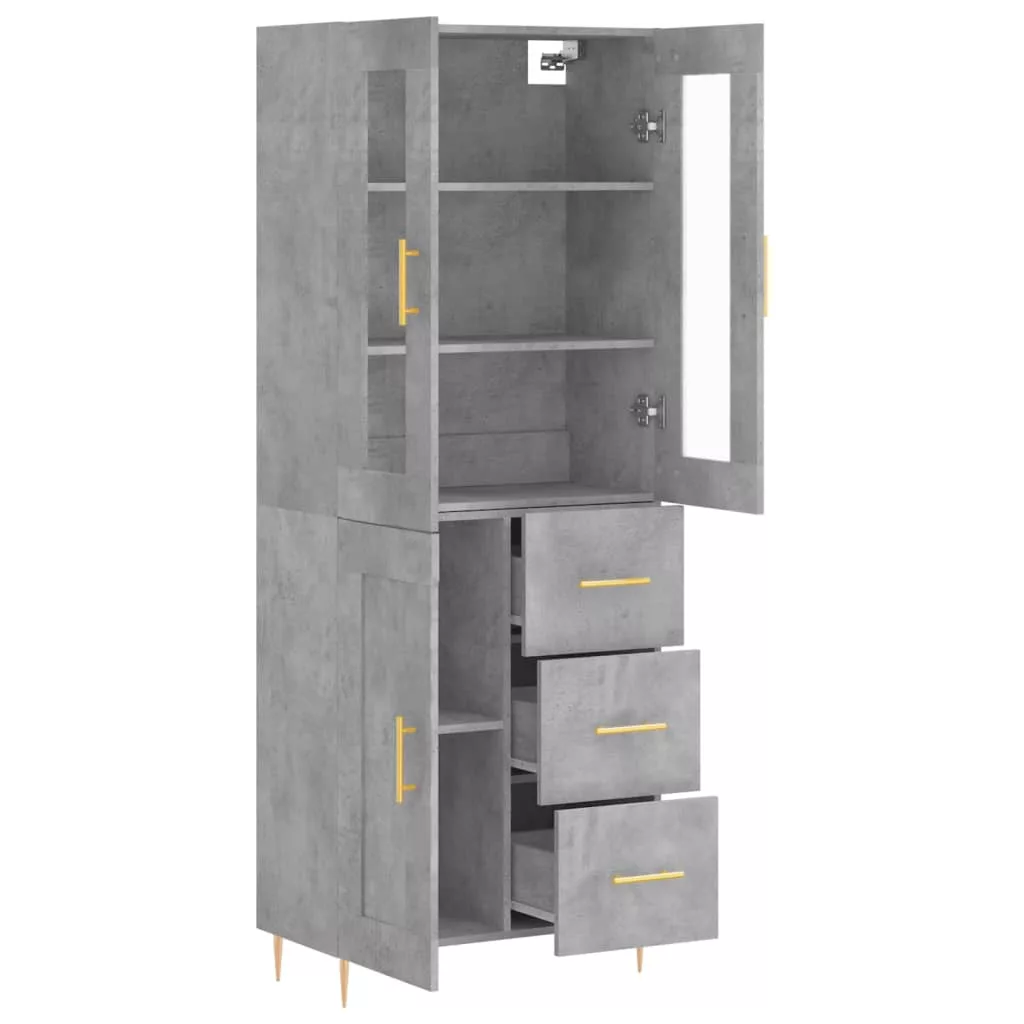 betonszürke szerelt fa magasszekrény 69,5 x 34 x 180 cm