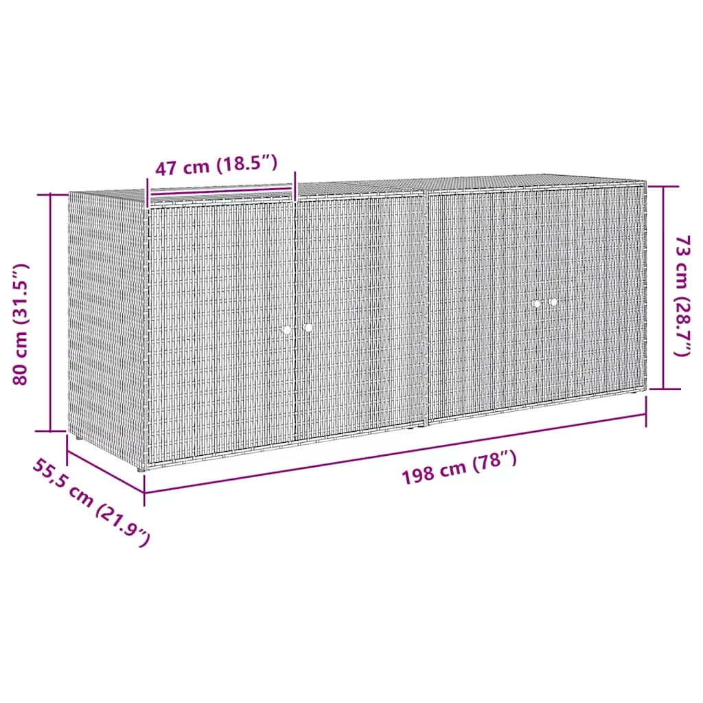 fekete polyrattan kerti tárolószekrény 198 x 55,5 x 80 cm