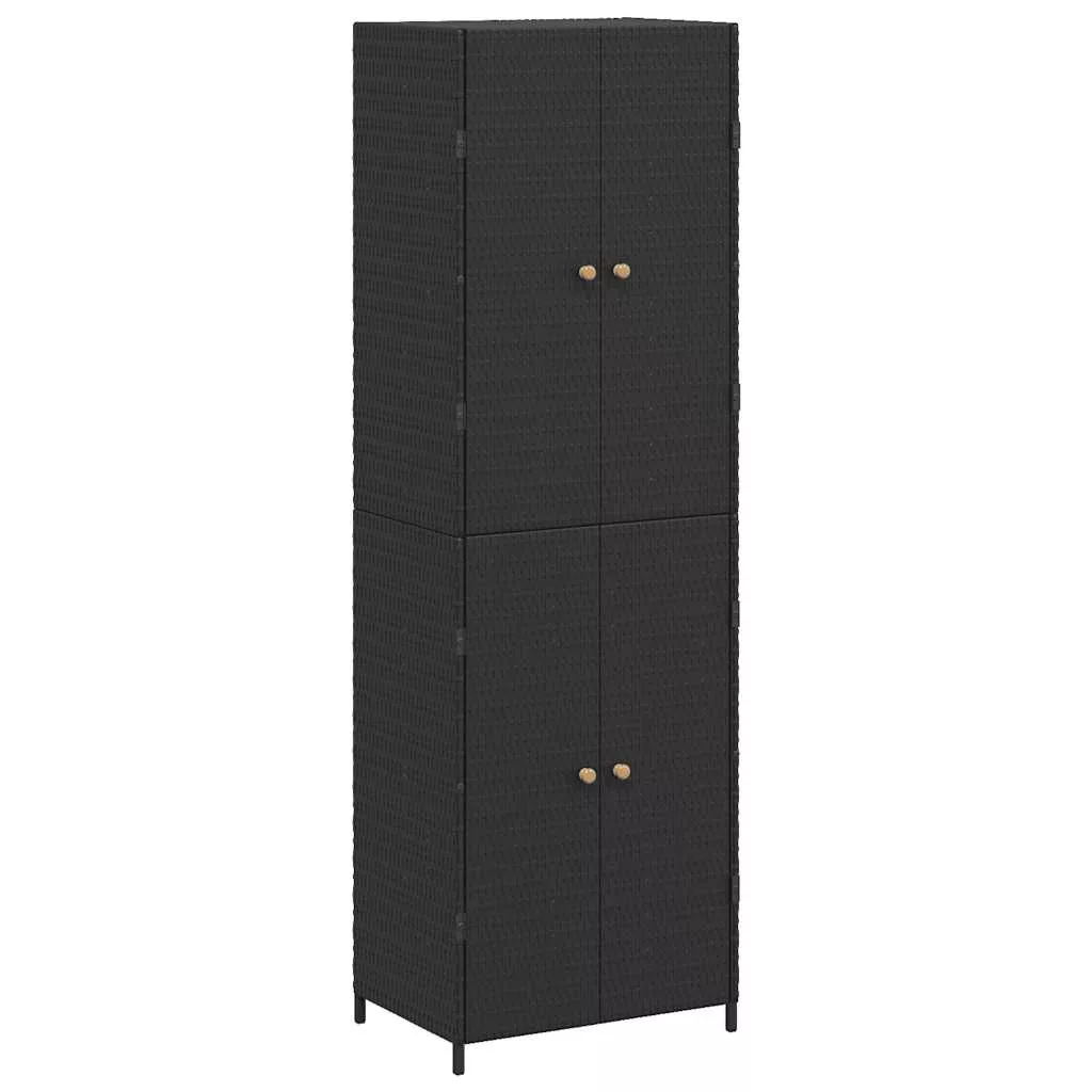 fekete polyrattan kerti tárolószekrény 59 x 40 x 180 cm