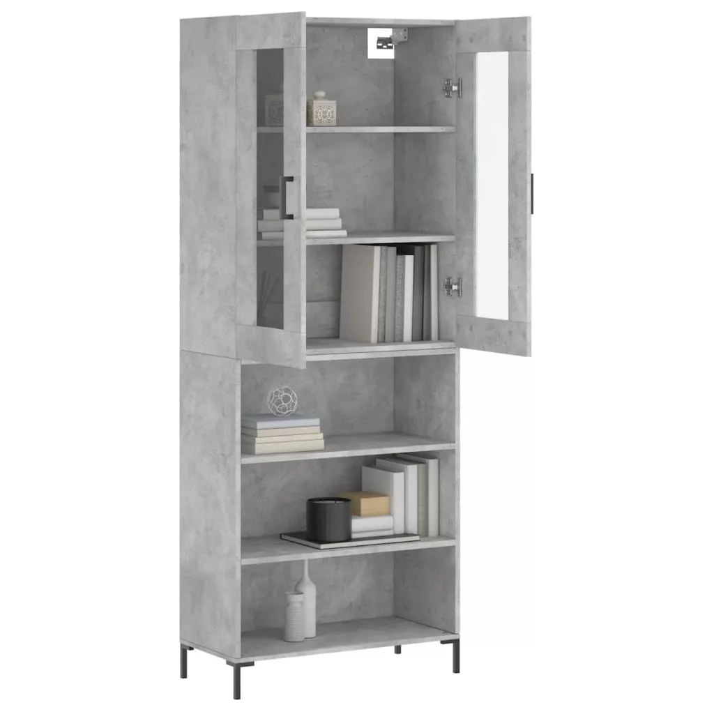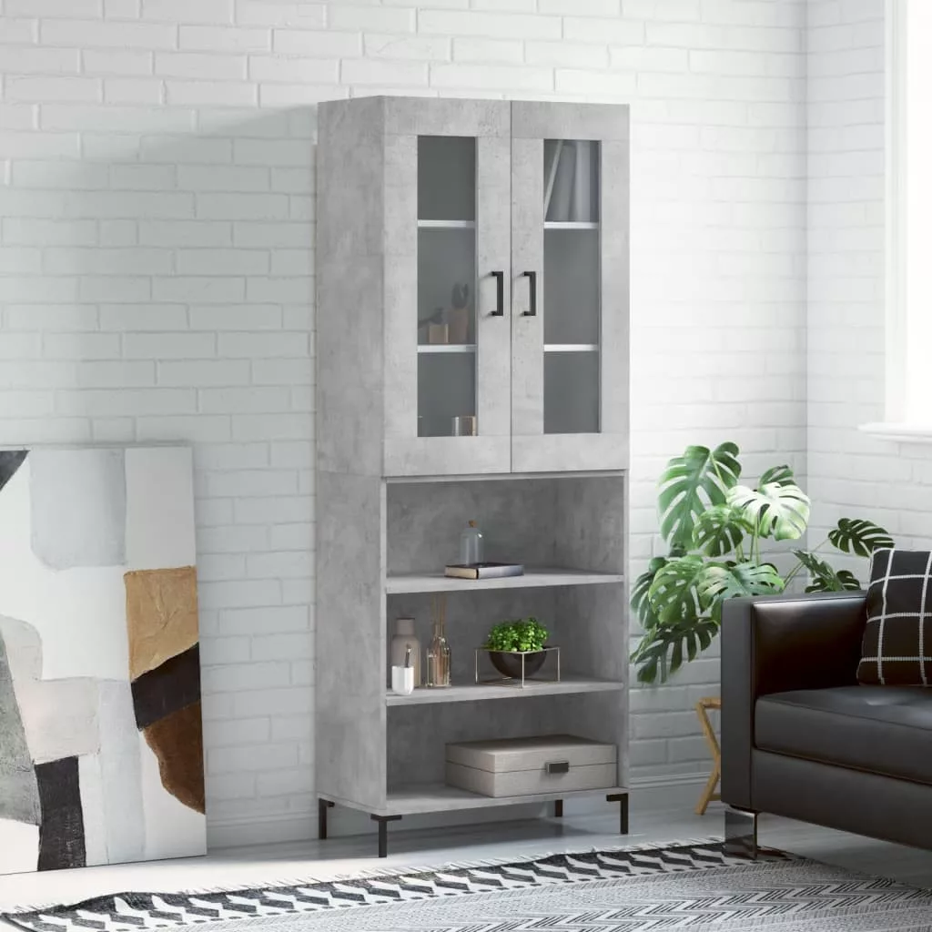 betonszürke szerelt fa magasszekrény 69,5 x 34 x 180 cm