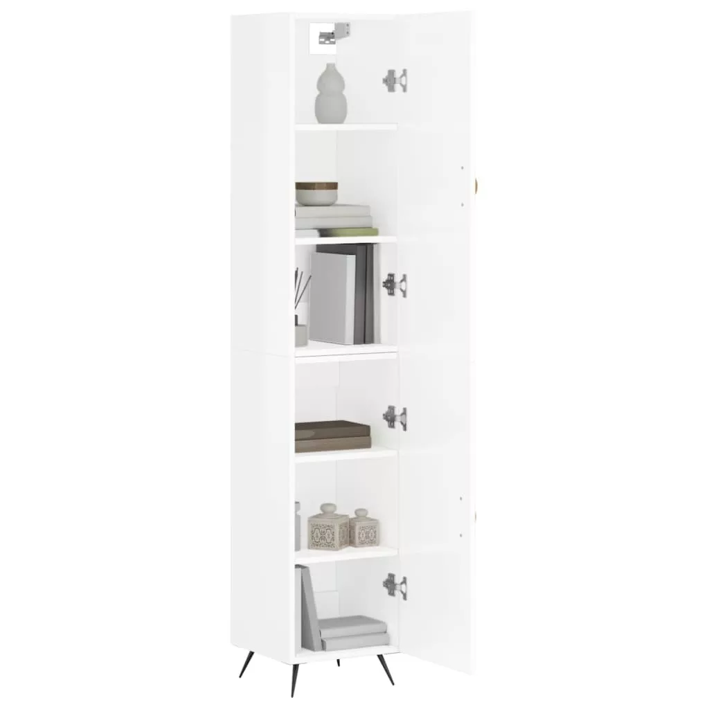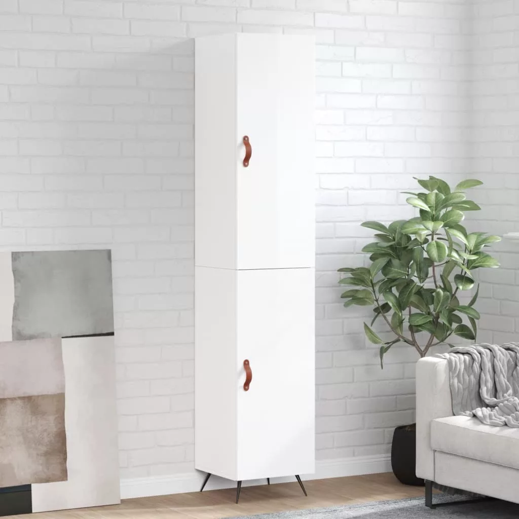 magasfényű fehér szerelt fa magasszekrény 34,5 x 34 x 180 cm