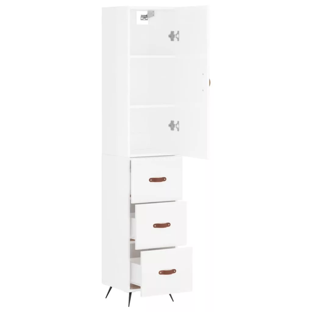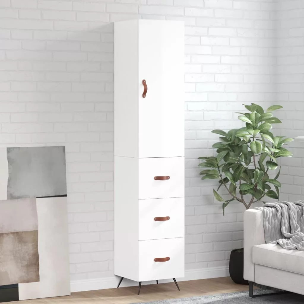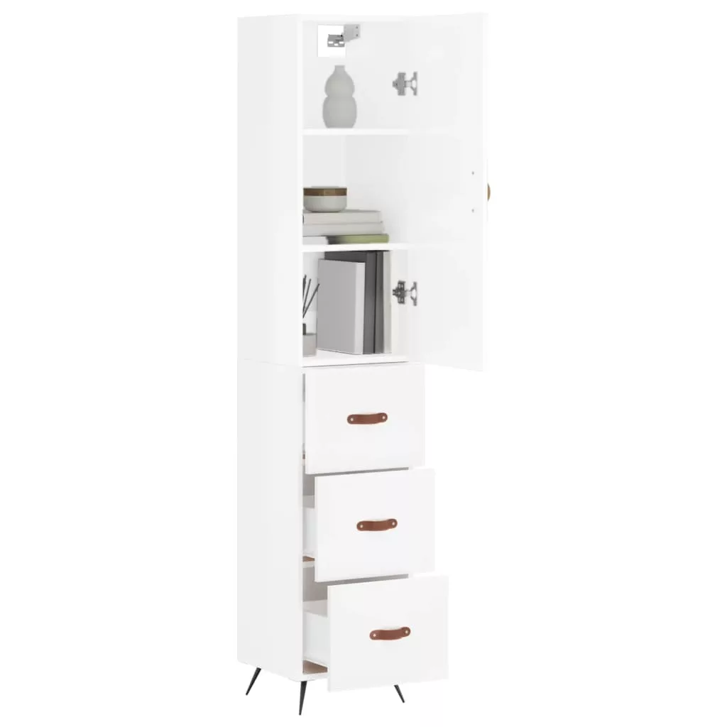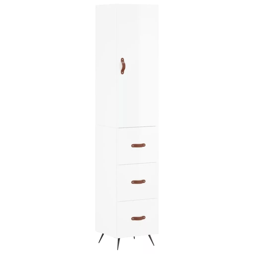 magasfényű fehér szerelt fa magasszekrény 34,5 x 34 x 180 cm