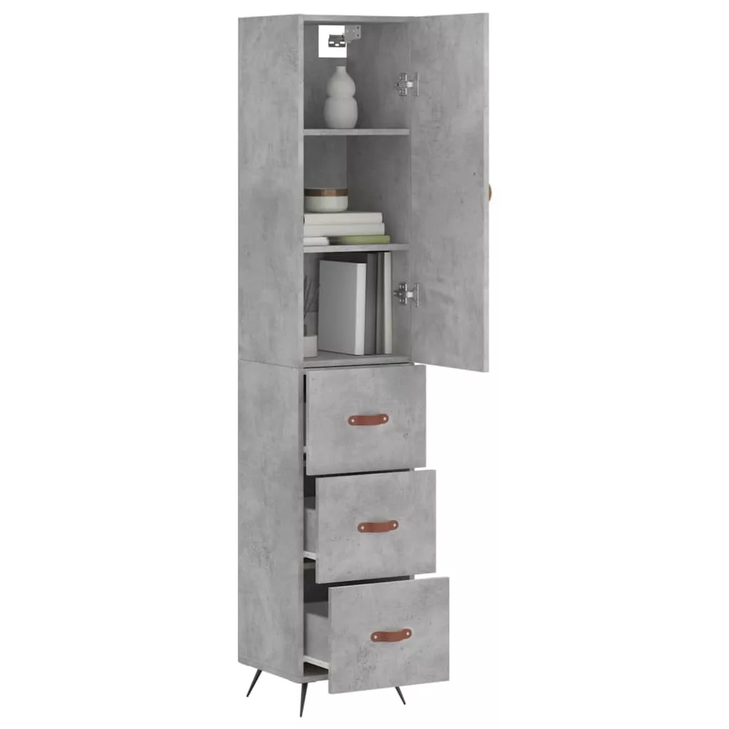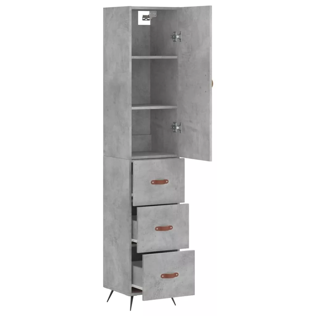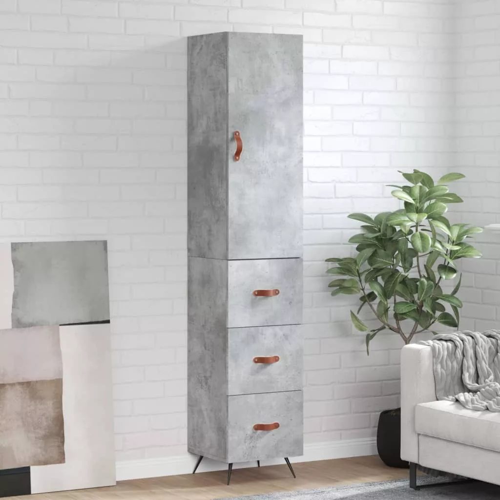 betonszürke szerelt fa magasszekrény 34,5x34x180 cm