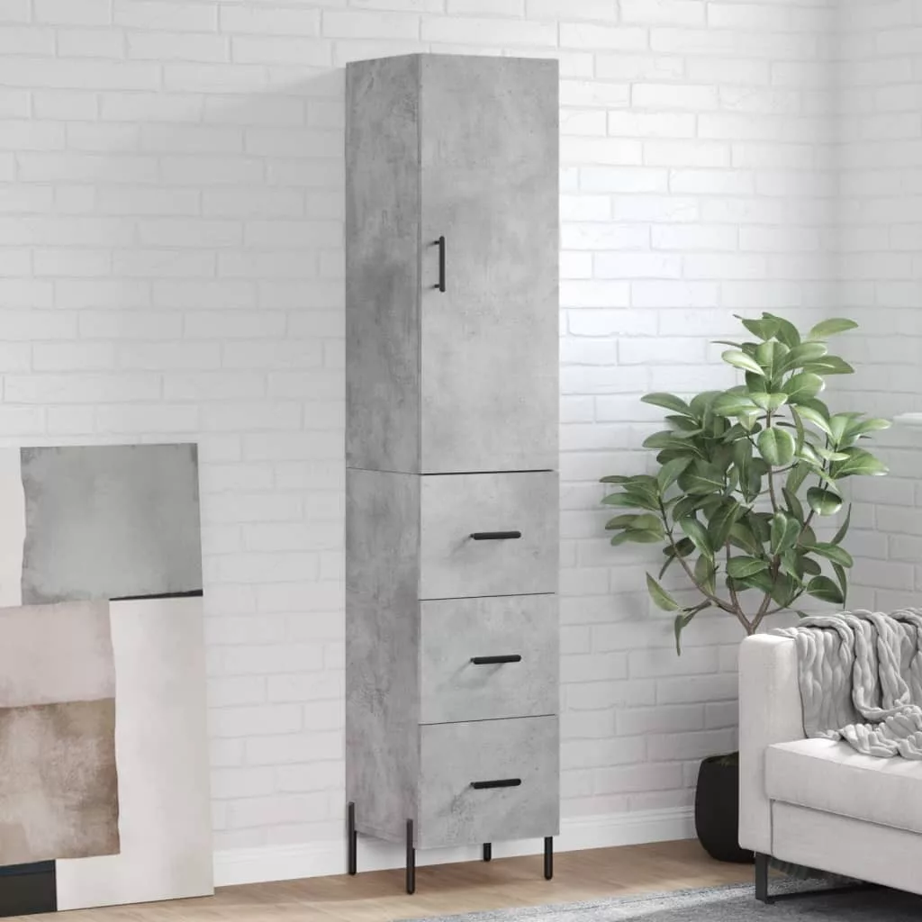 betonszürke szerelt fa magasszekrény 34,5x34x180 cm