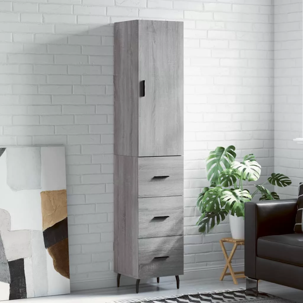 szürke sonoma szerelt fa magasszekrény 34,5 x 34 x 180 cm