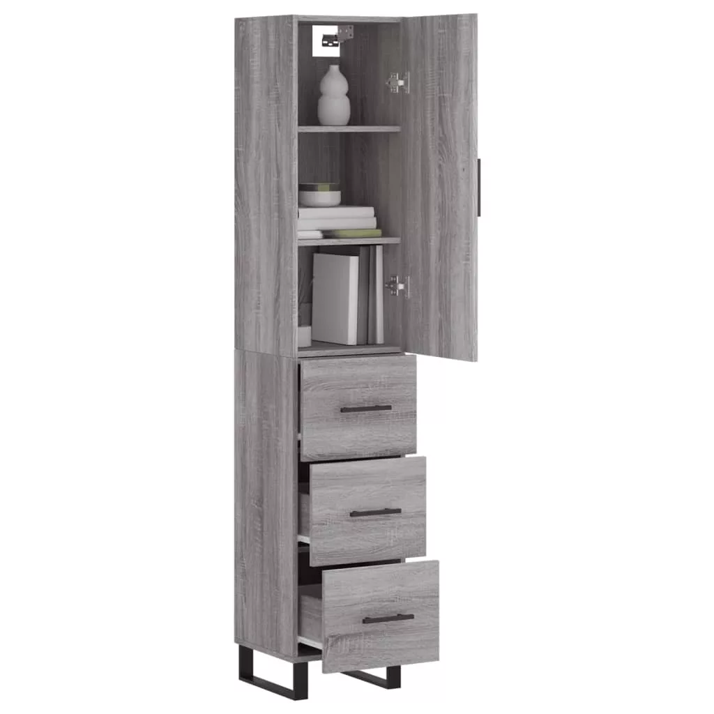 szürke sonoma szerelt fa magasszekrény 34,5 x 34 x 180 cm