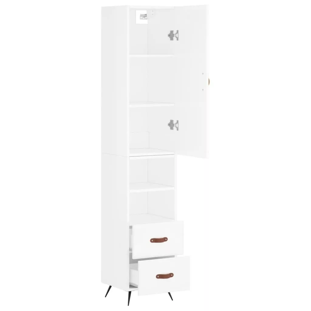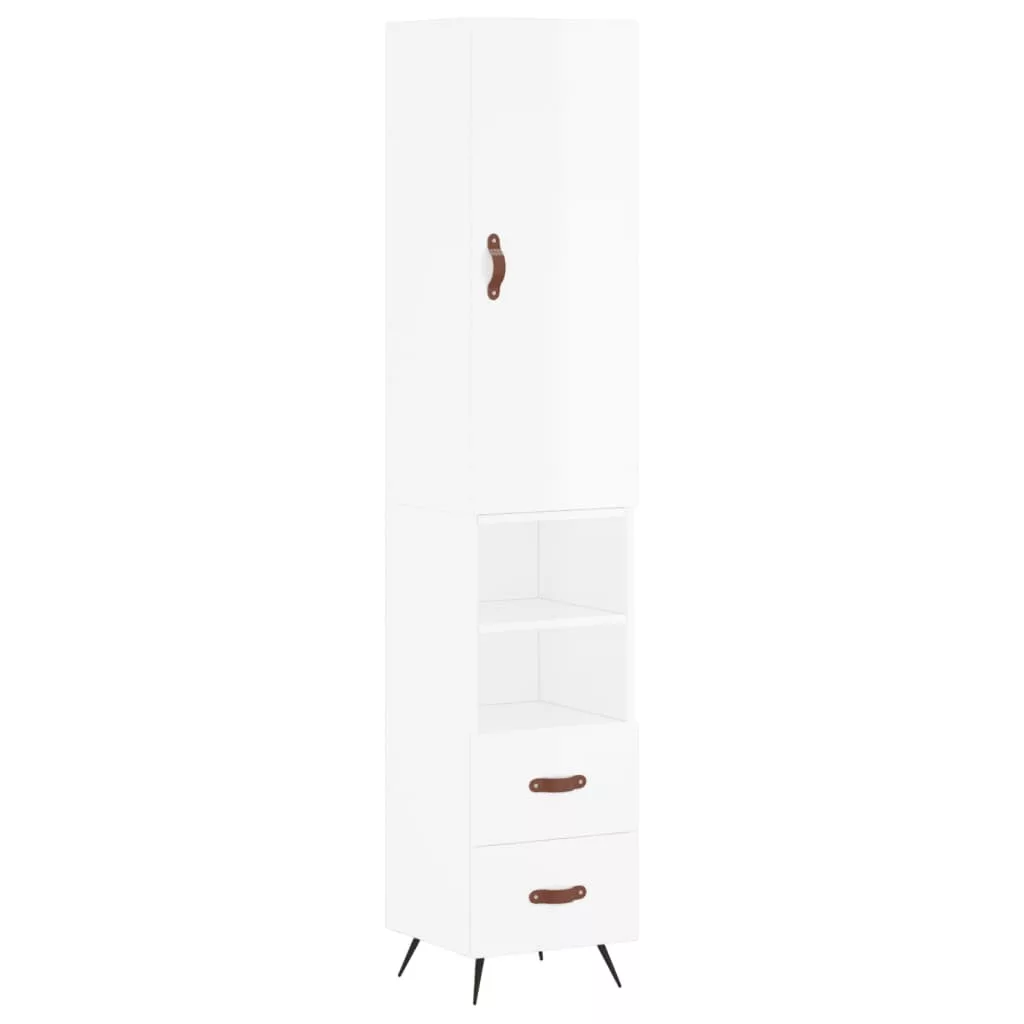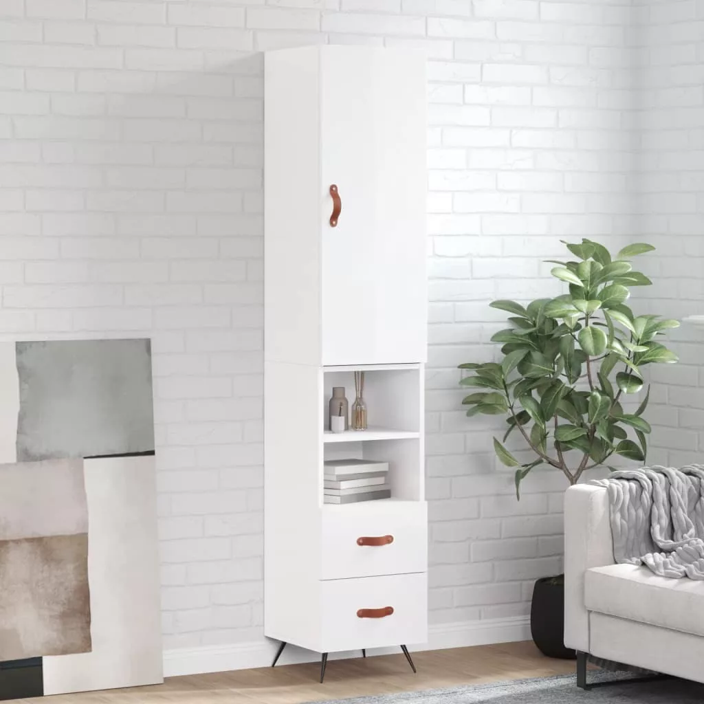 magasfényű fehér szerelt fa magasszekrény 34,5 x 34 x 180 cm