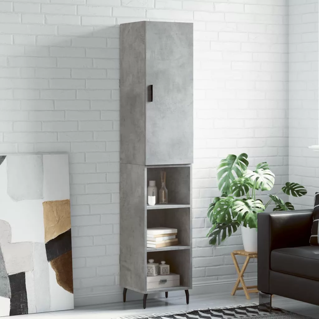 betonszürke szerelt fa magasszekrény 34,5x34x180 cm