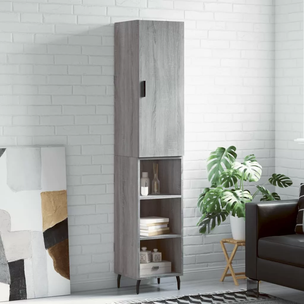 szürke sonoma szerelt fa magasszekrény 34,5 x 34 x 180 cm