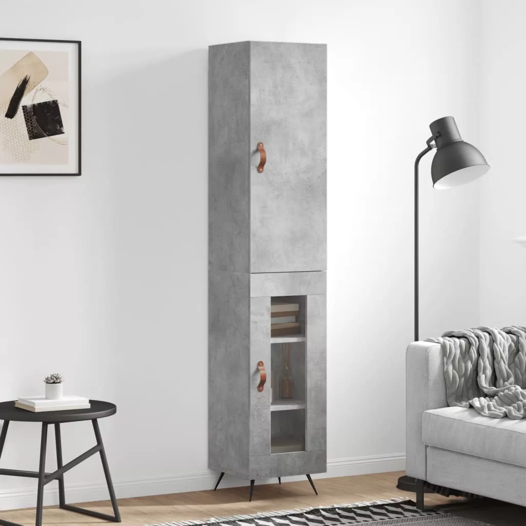 betonszürke szerelt fa magasszekrény 34,5x34x180 cm
