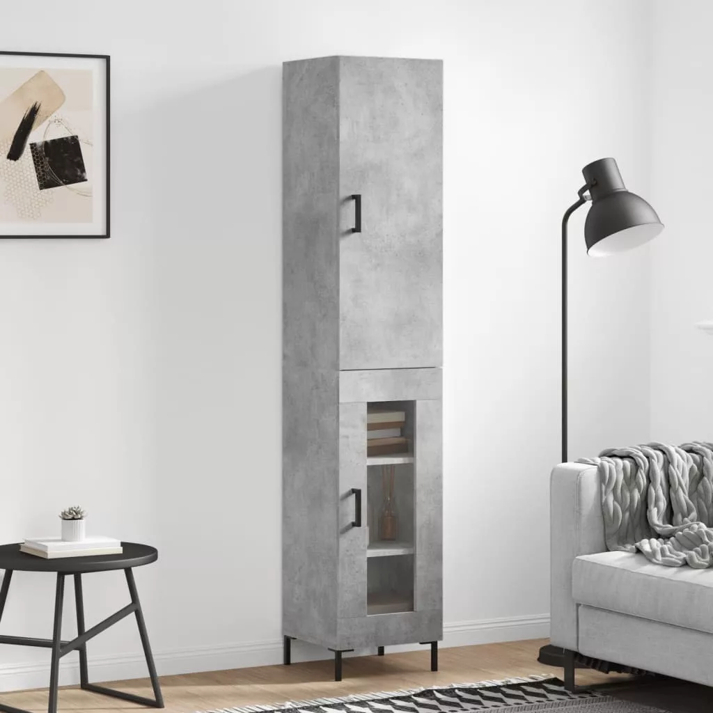 betonszürke szerelt fa magasszekrény 34,5x34x180 cm