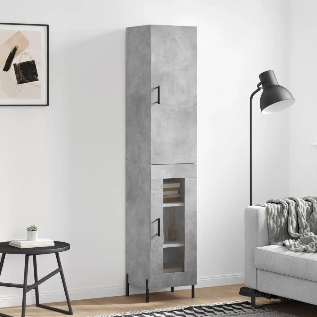 betonszürke szerelt fa magasszekrény 34,5x34x180 cm