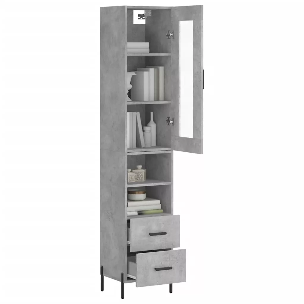 betonszürke szerelt fa magasszekrény 34,5x34x180 cm