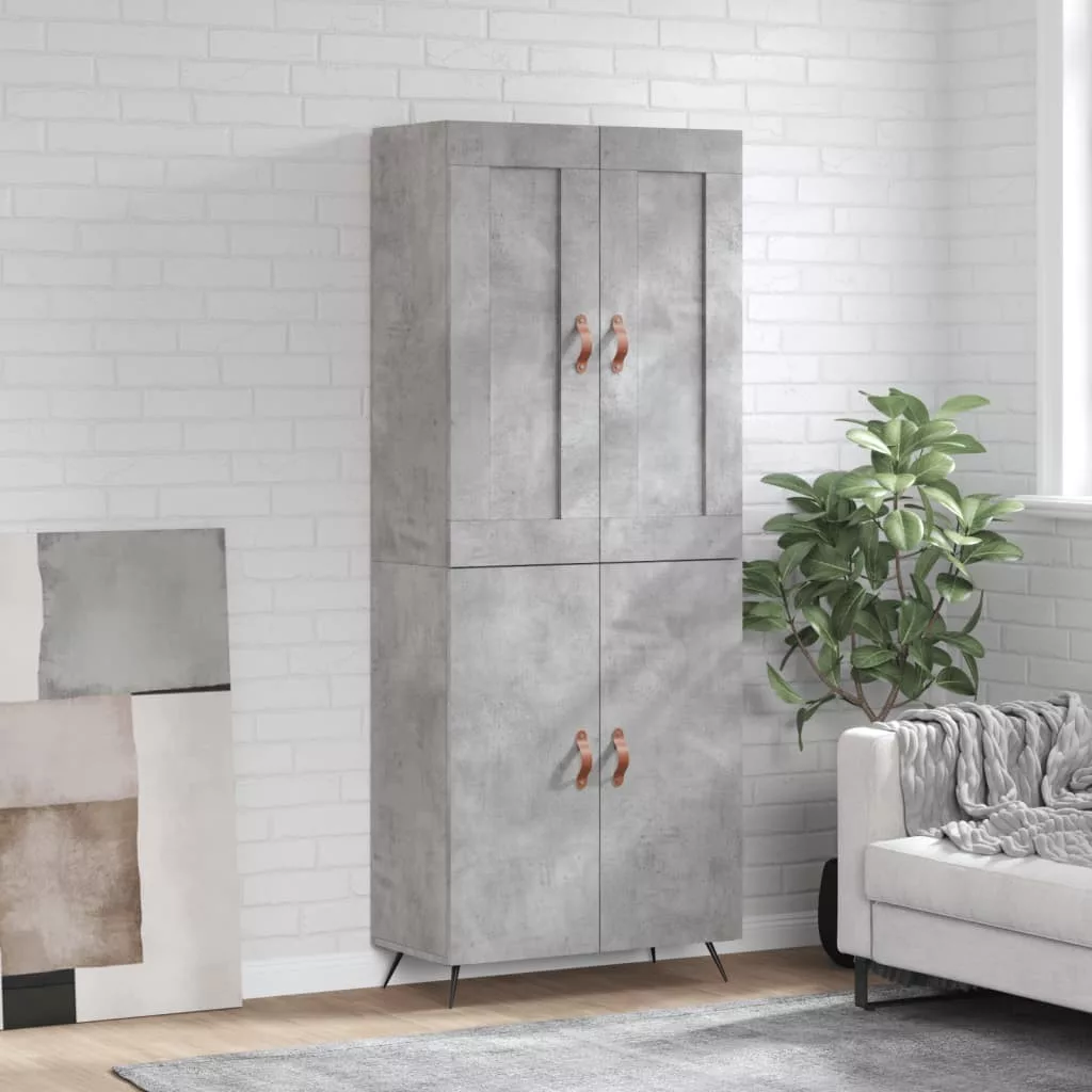 betonszürke szerelt fa magasszekrény 69,5 x 34 x 180 cm