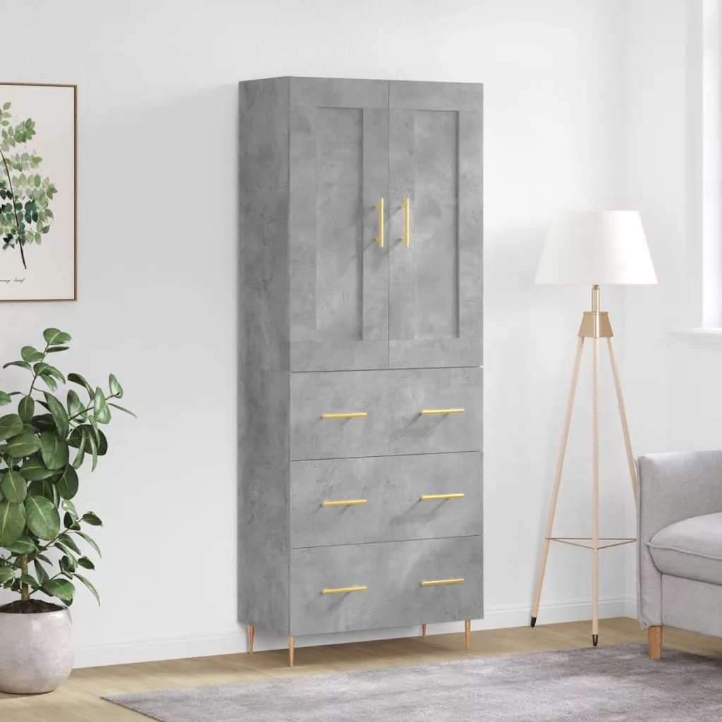 betonszürke szerelt fa magasszekrény 69,5 x 34 x 180 cm