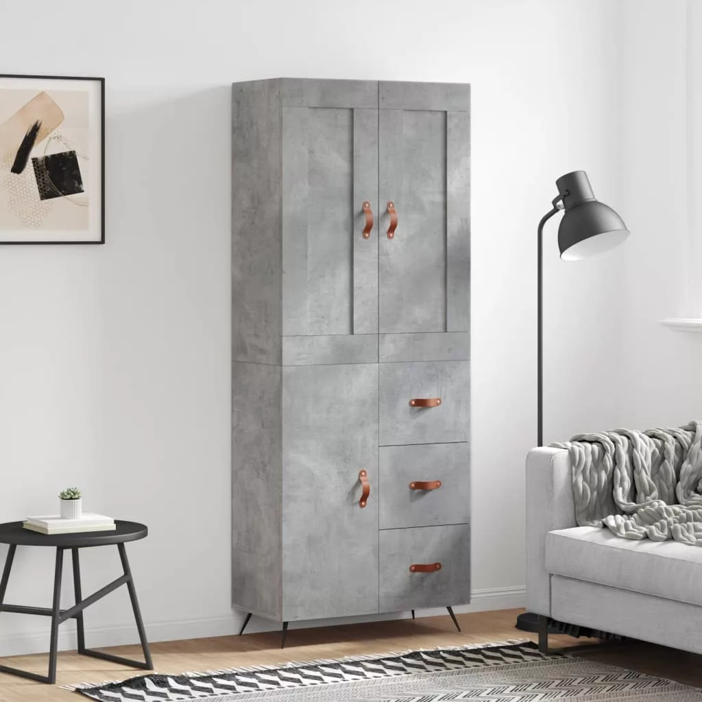betonszürke szerelt fa magasszekrény 69,5 x 34 x 180 cm