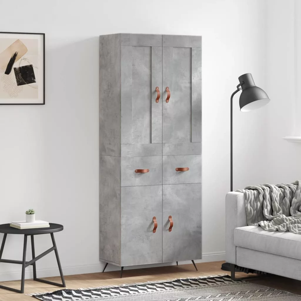 betonszürke szerelt fa magasszekrény 69,5 x 34 x 180 cm