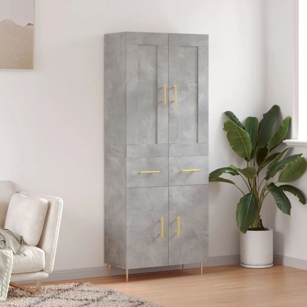 betonszürke szerelt fa magasszekrény 69,5 x 34 x 180 cm