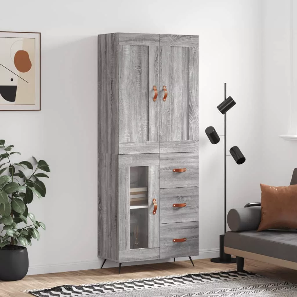 szürke sonoma szerelt fa magasszekrény 69,5 x 34 x 180 cm
