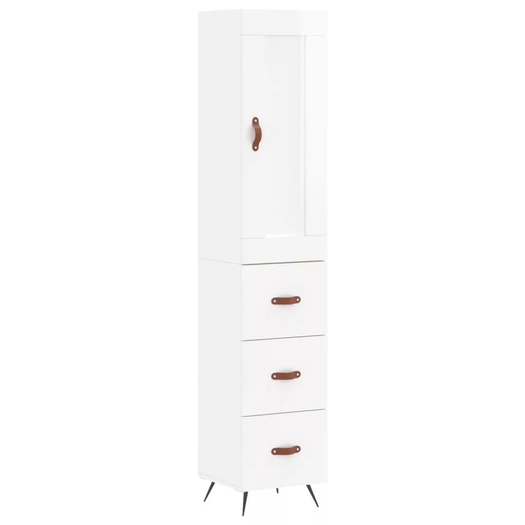 magasfényű fehér szerelt fa magasszekrény 34,5 x 34 x 180 cm
