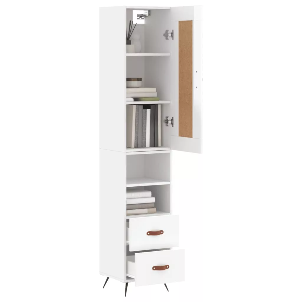 magasfényű fehér szerelt fa magasszekrény 34,5 x 34 x 180 cm