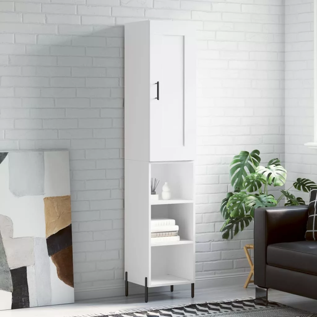 Stílusos magasszekrényt keres? Ez a magasszekrény egyedi bájt kölcsönöz meglévő belső terének! Tartós anyag: A szerelt fa kivételes minőségű, sima felületű, szilárd, stabil, és ellenáll a nedvességnek. A szerelt fából készült szekrény erős és tartós.Bőséges tárolóhely: A tálalószekrény bőséges tárolóhelyet biztosít alapvető kellékei kézközelben történő rendezett tárolásához.Praktikus ajtó: Tartsa rendben környezetét azzal, hogy a kisebb tárgyakat a magasszekrény ajtaja mögé rejti.Fém lábak: A fém lábak nyugodt stílust kölcsönöznek a belső térnek, miközben stabilitást biztosítanak. Figyelem:A felborulás elkerülése érdekében ezt a terméket a mellékelt fali rögzítőeszközzel kell használni. Jó tudni:A falon belüli csavarok és dugók nem alaptartozékok. Azt tanácsoljuk, hogy keressen és használjon kifejezetten az Ön falához megfelelő csavarokat és dugókat. Ha nem biztos benne, konzultálhat egy szakemberrel. Kérjük, olvassa el és kövesse az utasítások minden lépését.