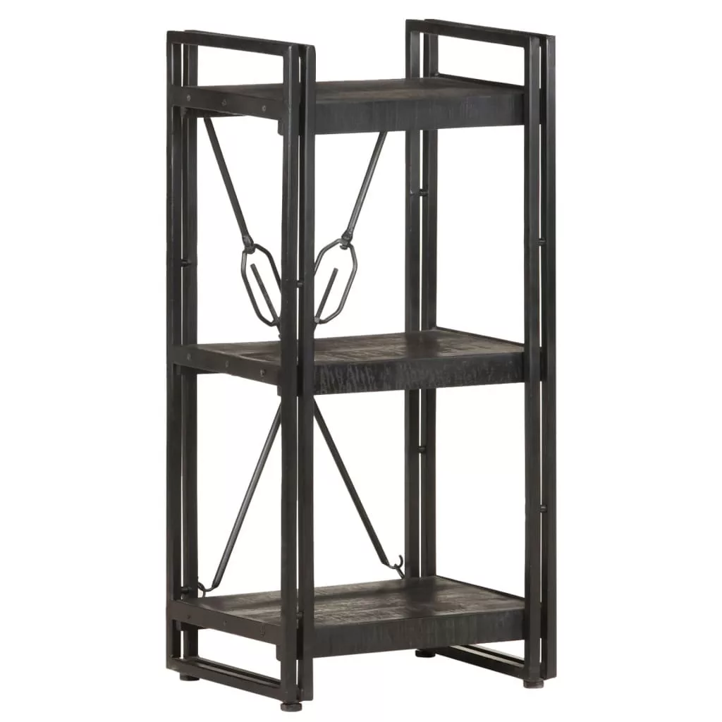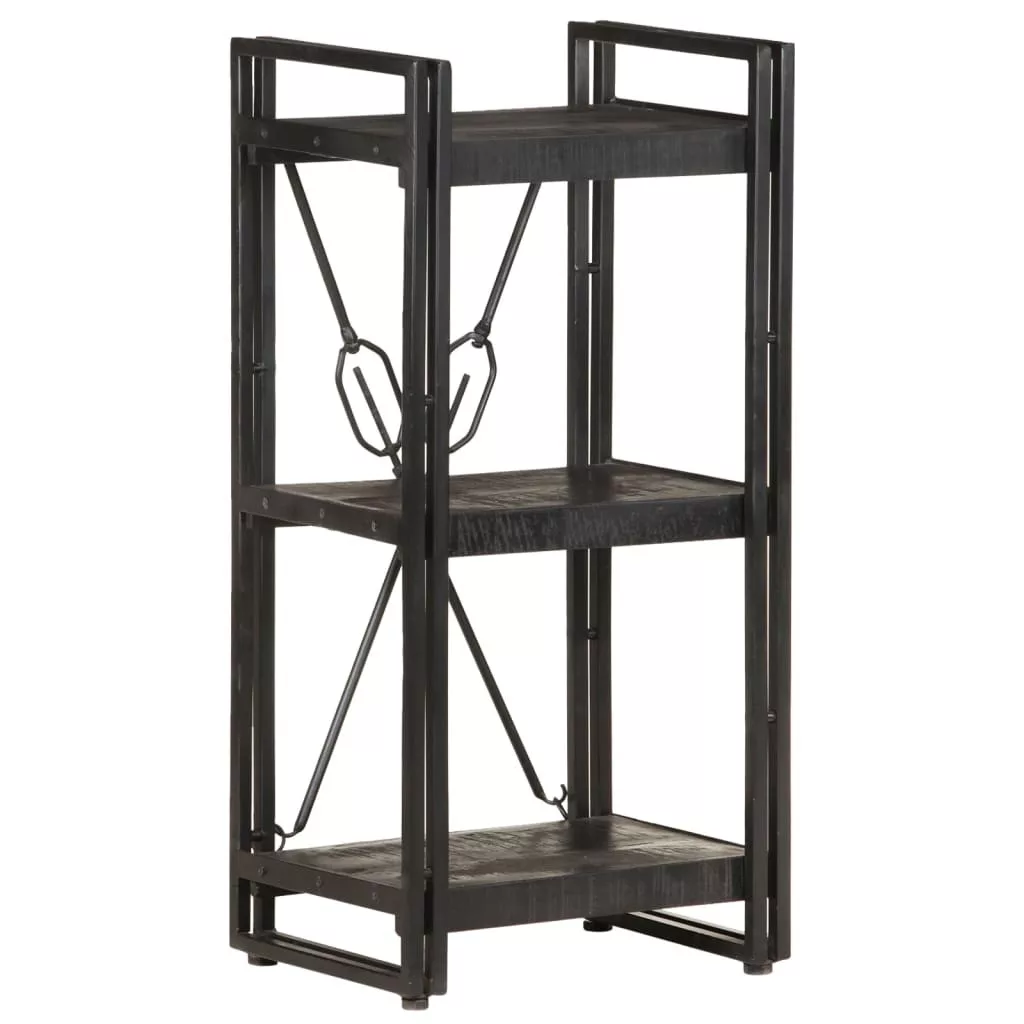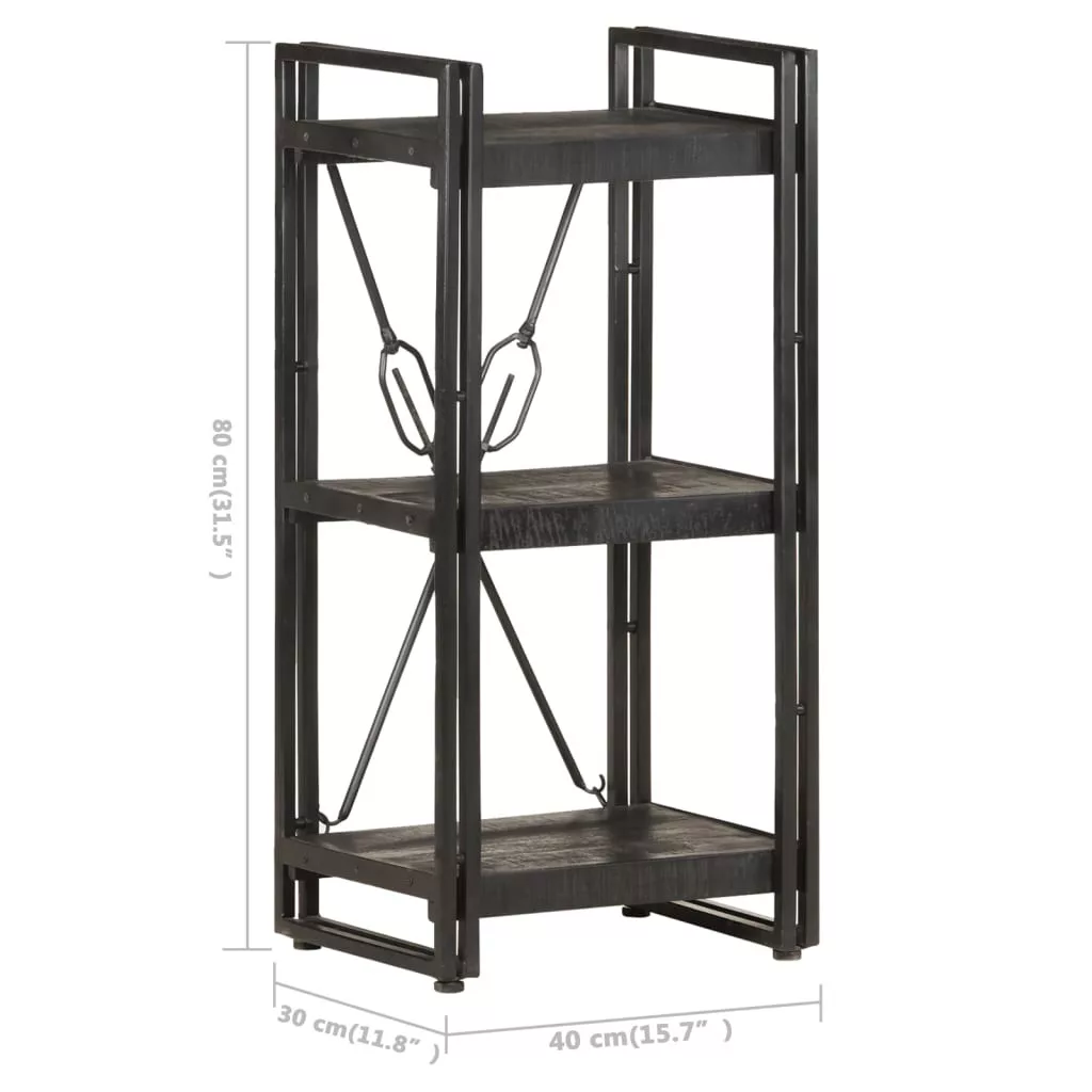 3 szintes fekete tömör mangófa könyvespolc 40 x 30 x 80 cm