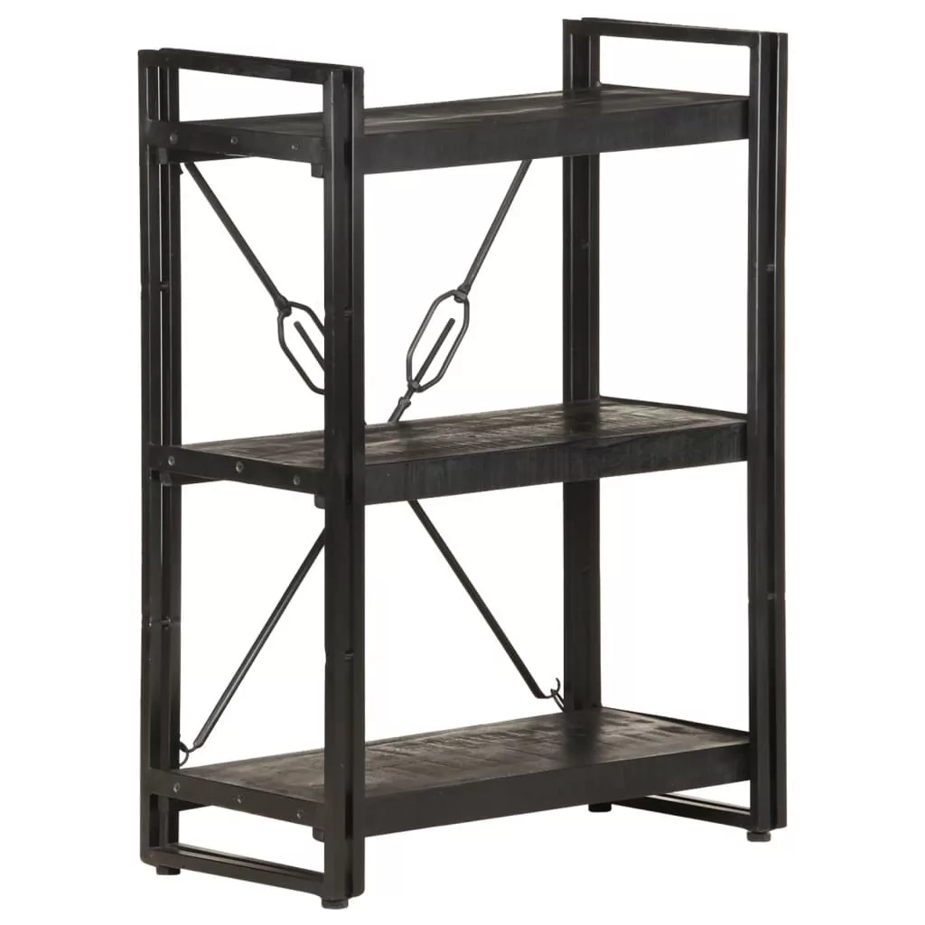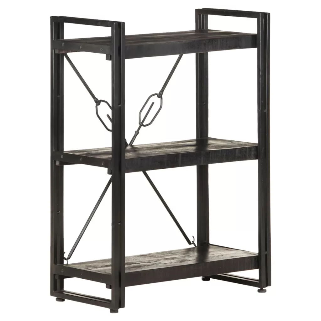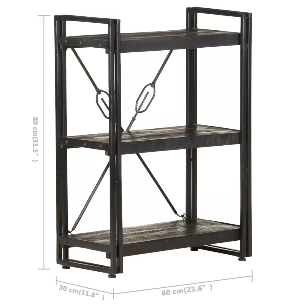 3 szintes fekete tömör mangófa könyvespolc 60 x 30 x 80 cm