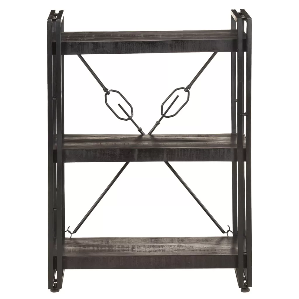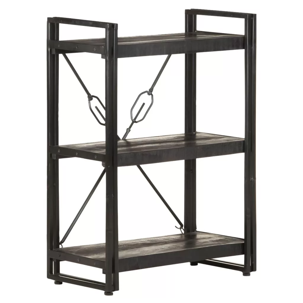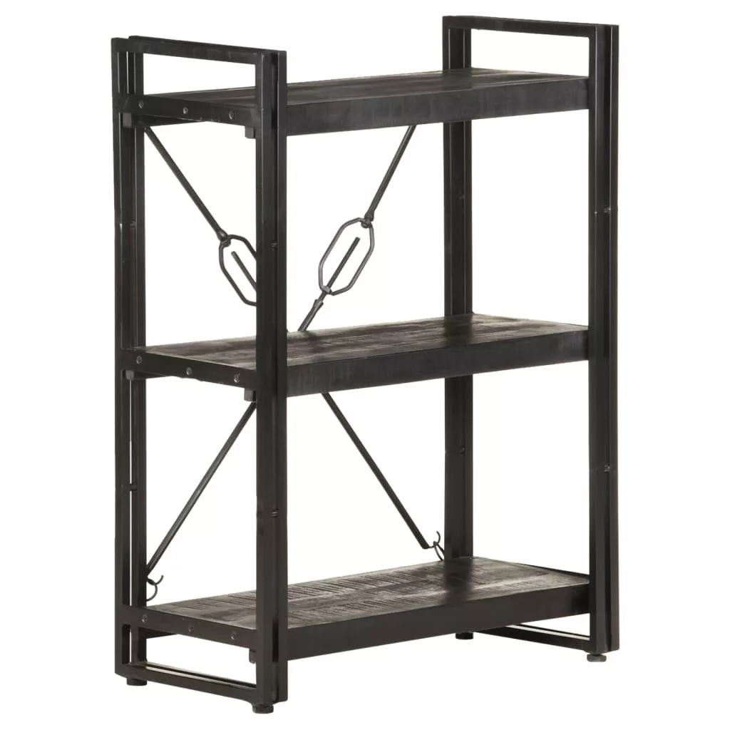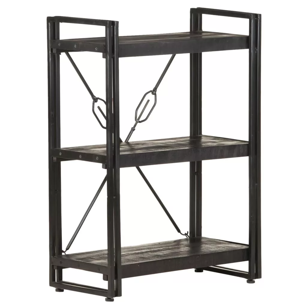 3 szintes fekete tömör mangófa könyvespolc 60 x 30 x 80 cm