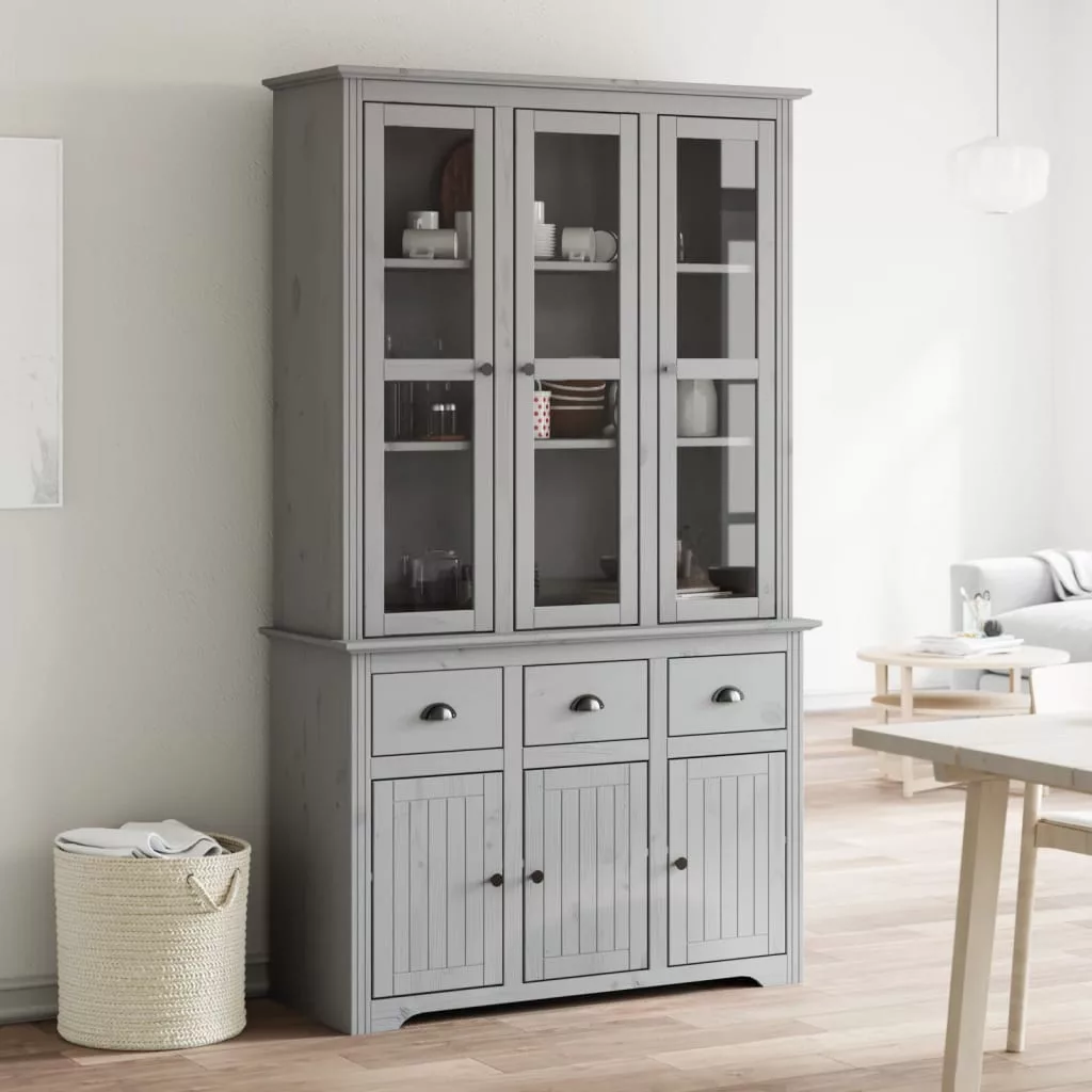 BODO szürke tömör fenyőfa magasszekrény 115,5x43x200,5 cm