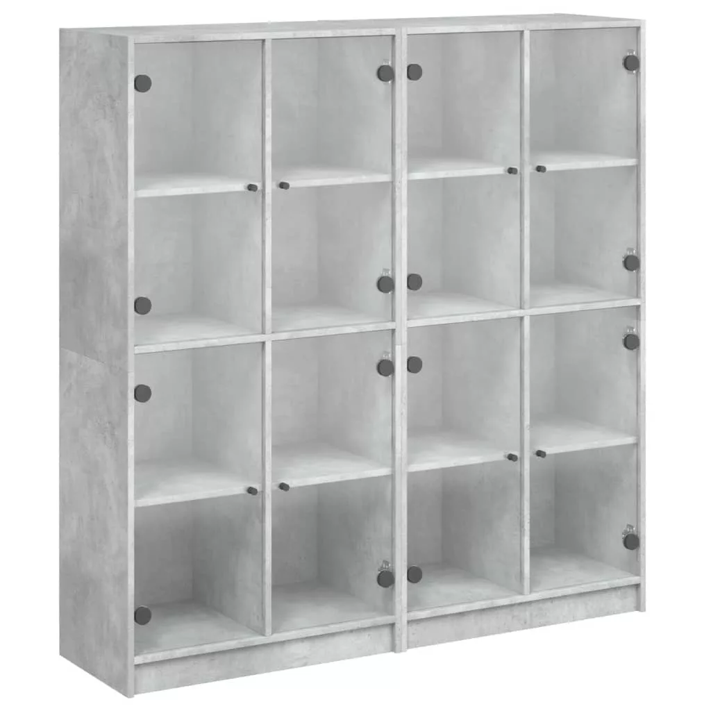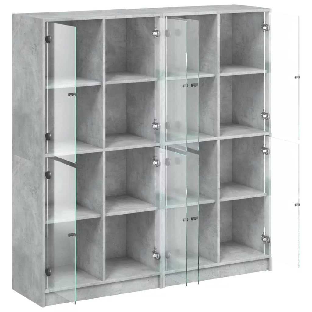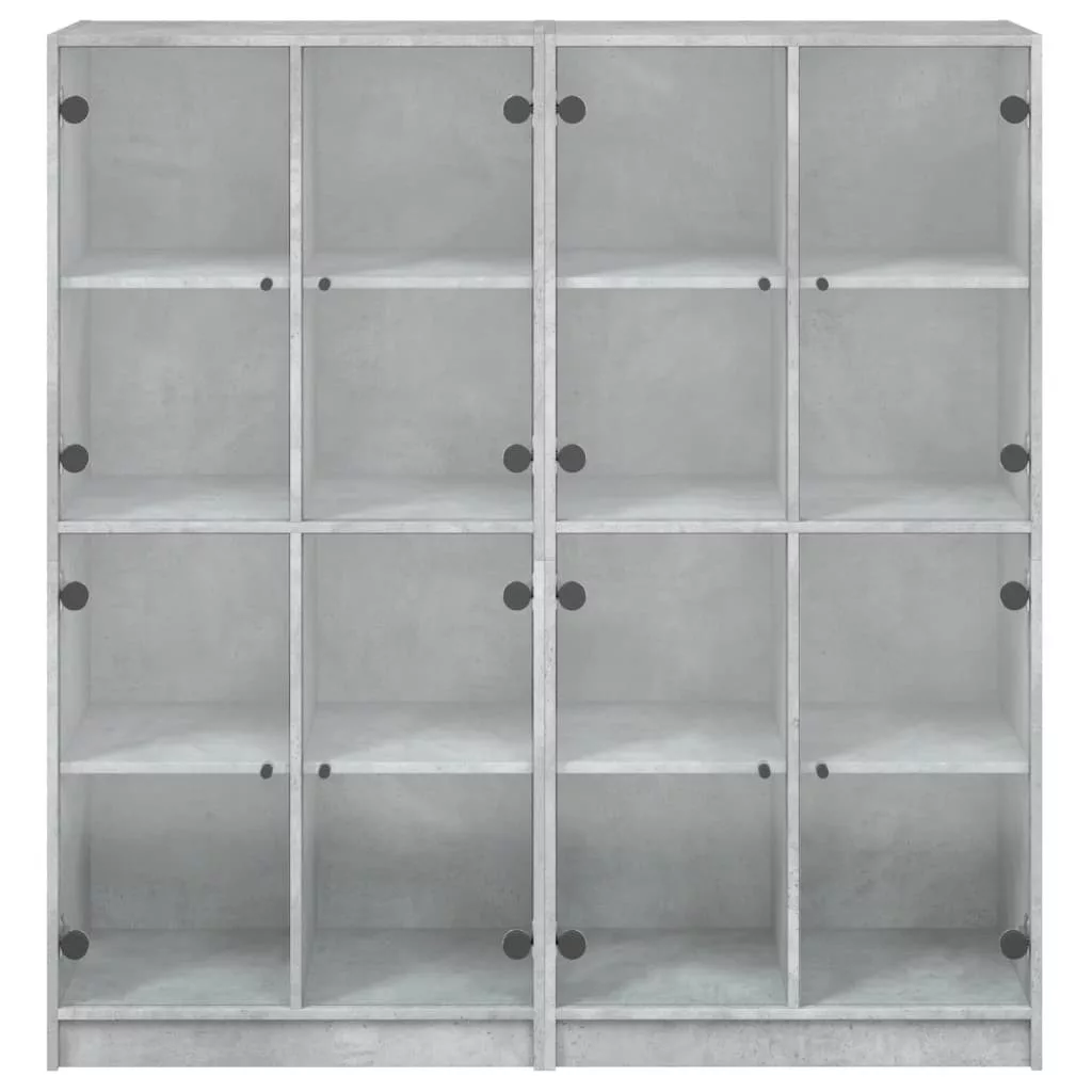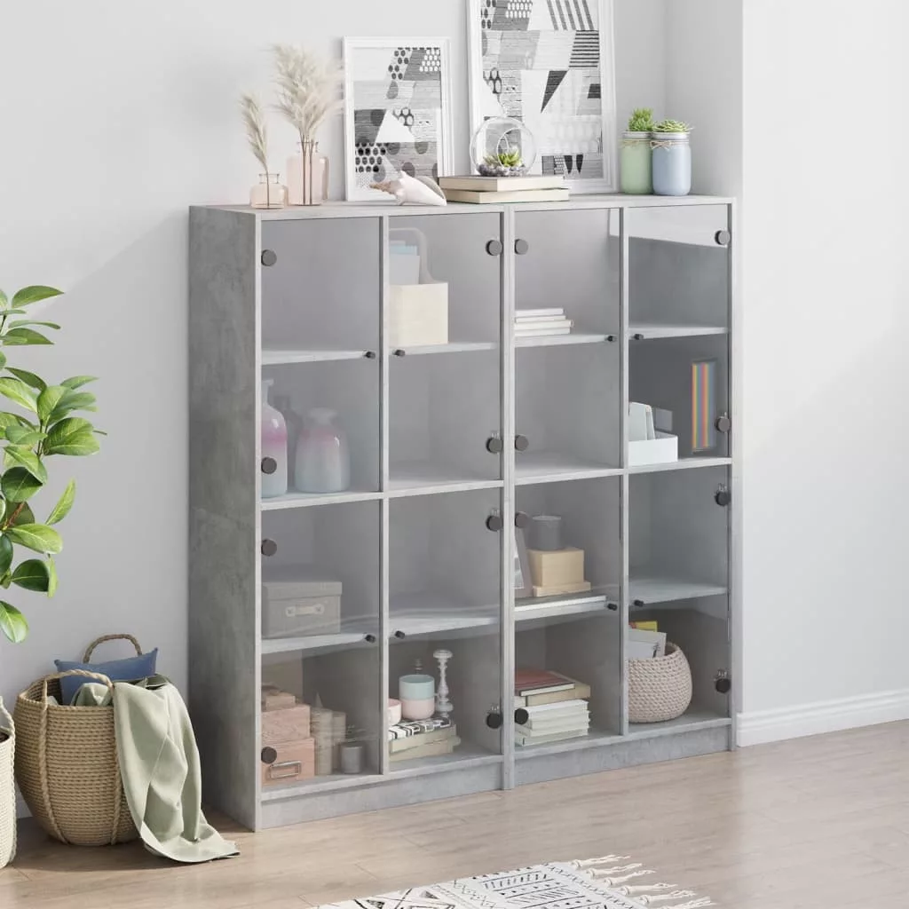 betonszürke szerelt fa könyvespolc ajtókkal 136 x 37 x 142 cm