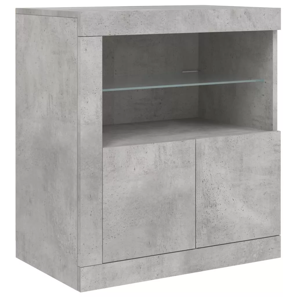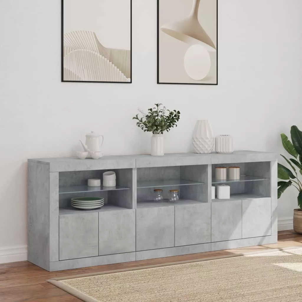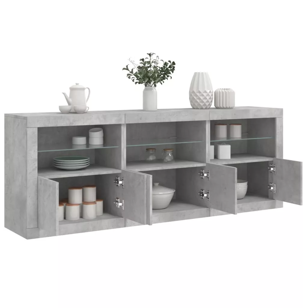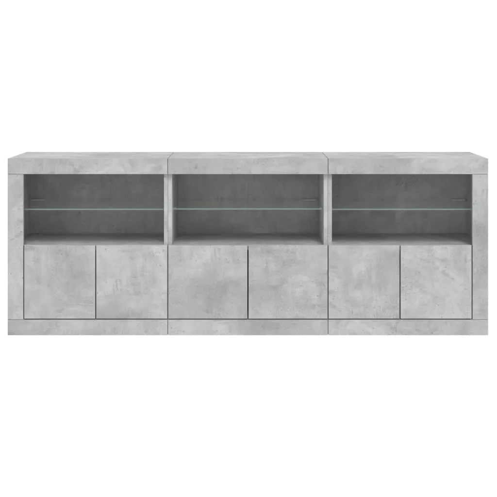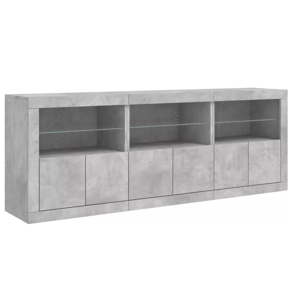 betonszürke tálalószekrény LED-világítással 181,5x37x67 cm