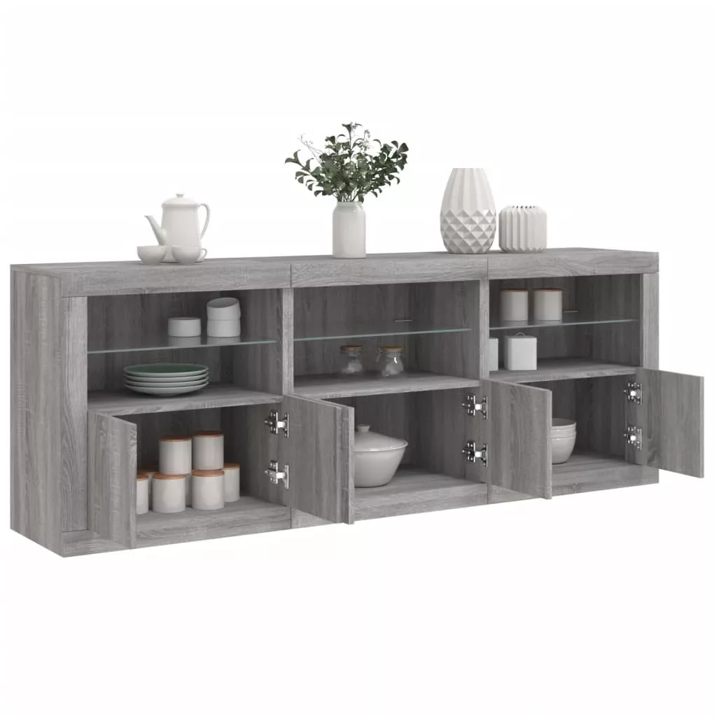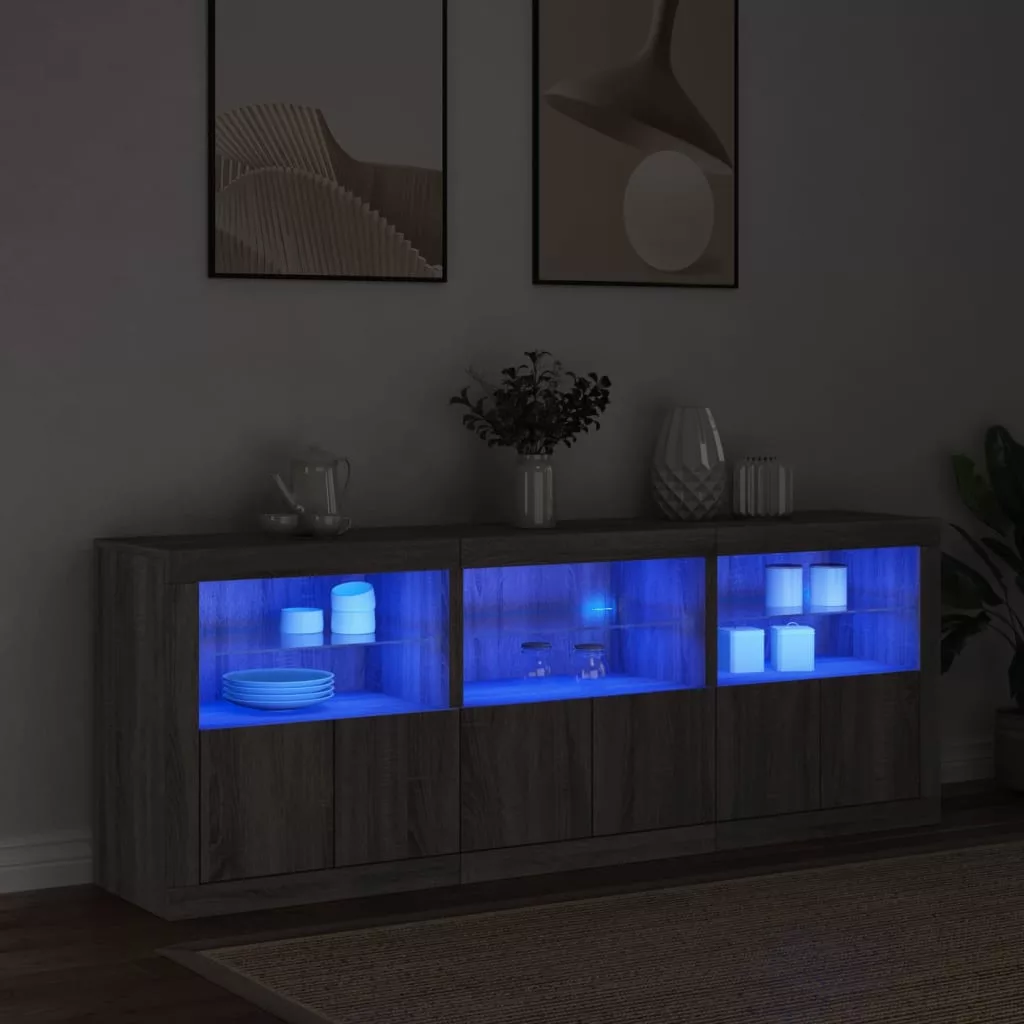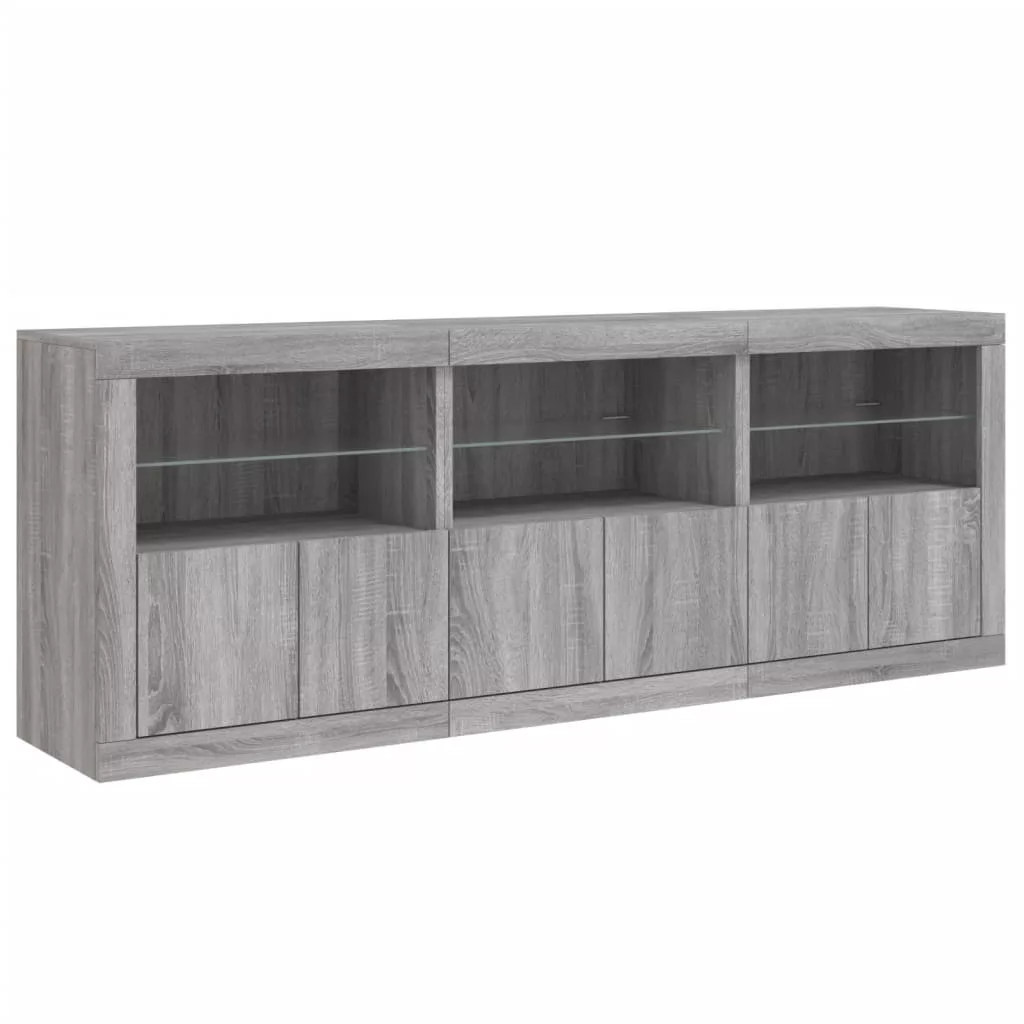 szürke sonoma tálalószekrény LED-világítással 181,5x37x67 cm