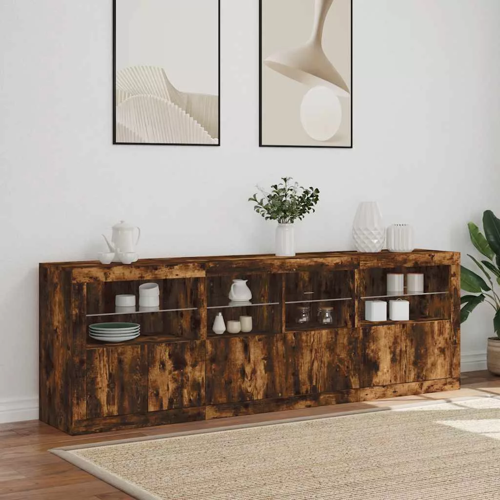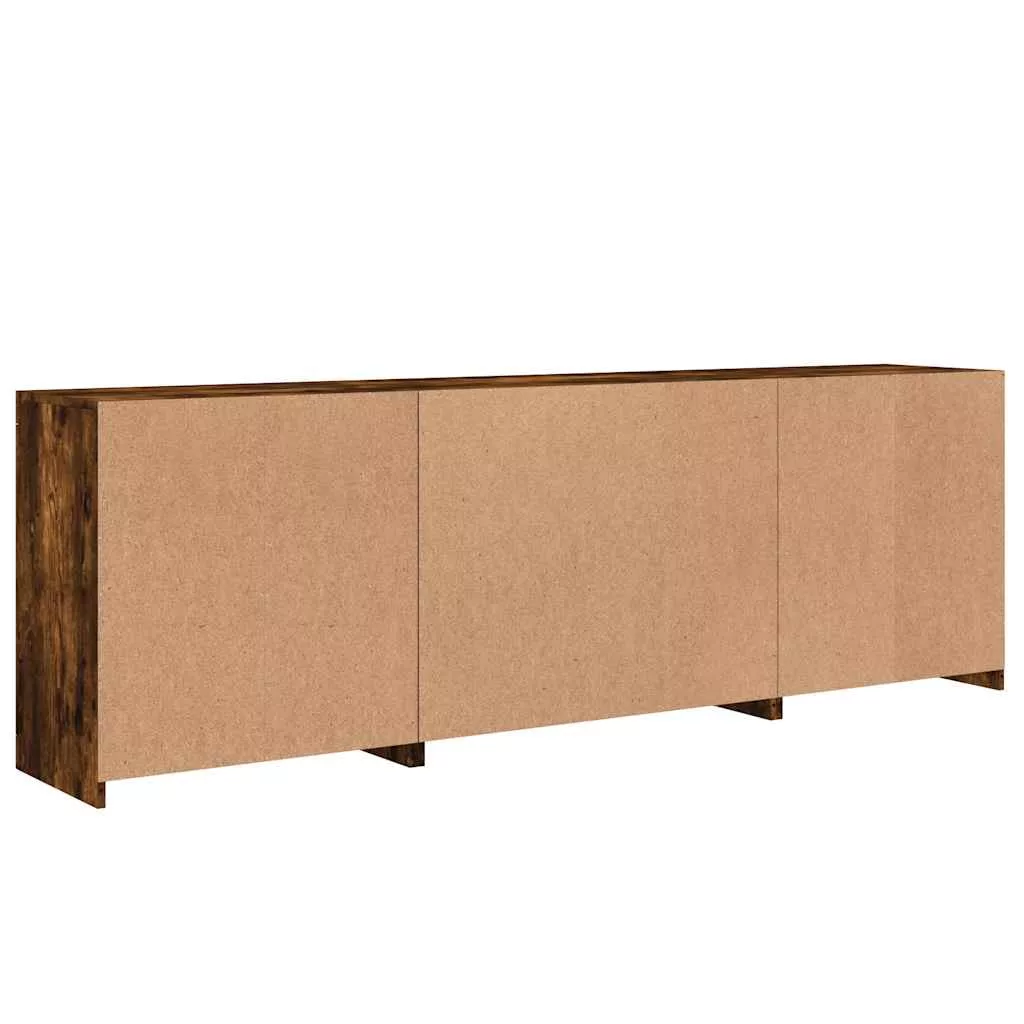 füstös tölgy színű tálalószekrény LED-ekkel 202x37x67 cm