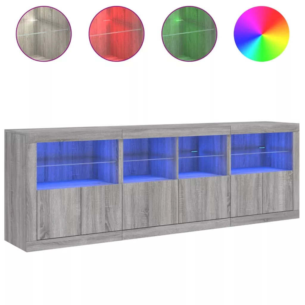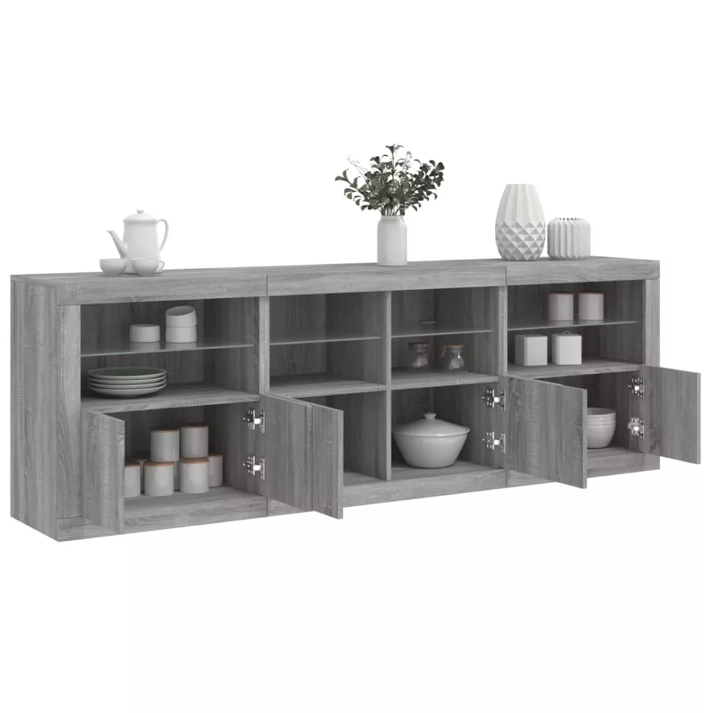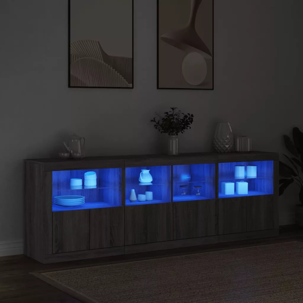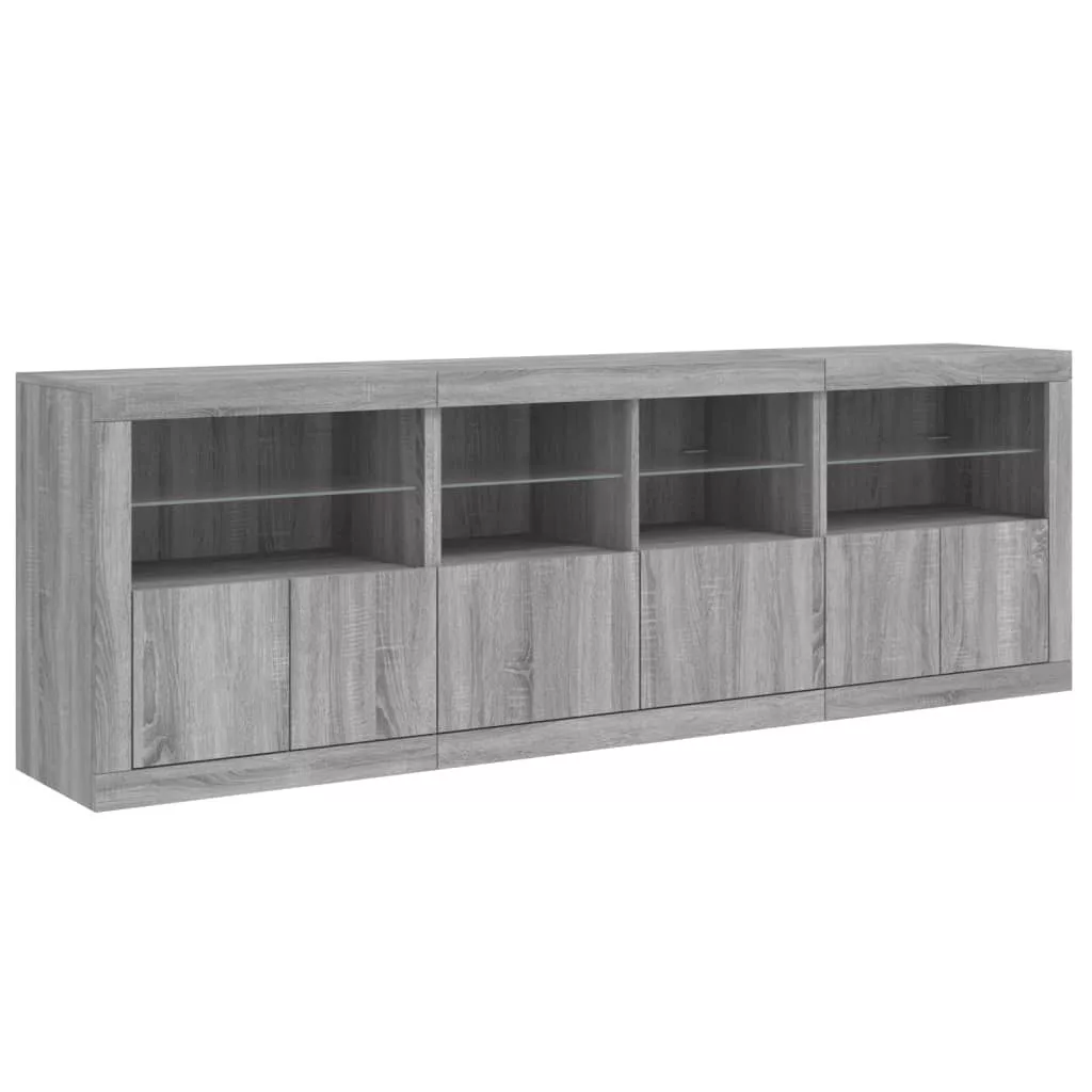 szürke sonoma tálalószekrény LED-világítással 202x37x67 cm