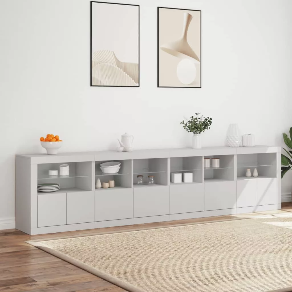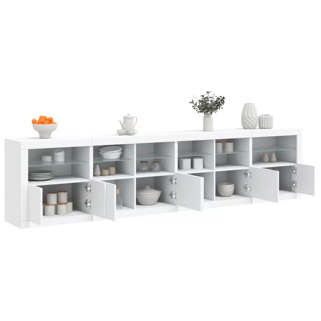 fehér tálalószekrény LED-világítással 283x37x67 cm