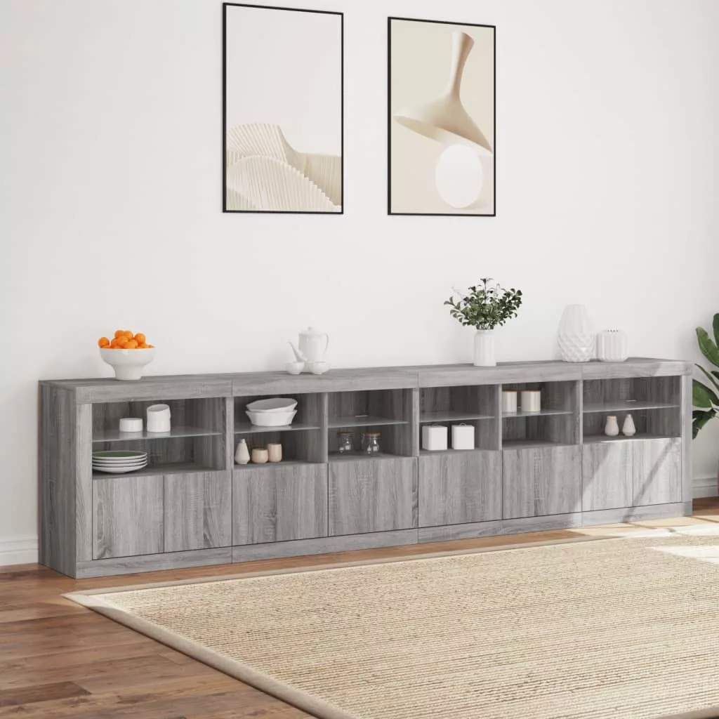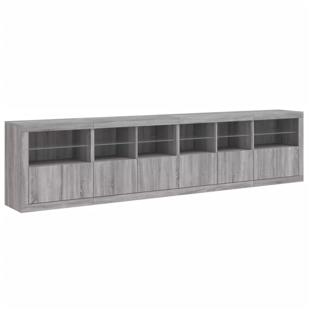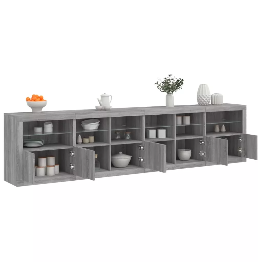 szürke sonoma tálalószekrény LED-világítással 283x37x67 cm