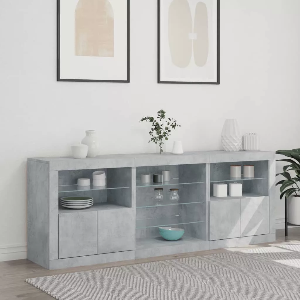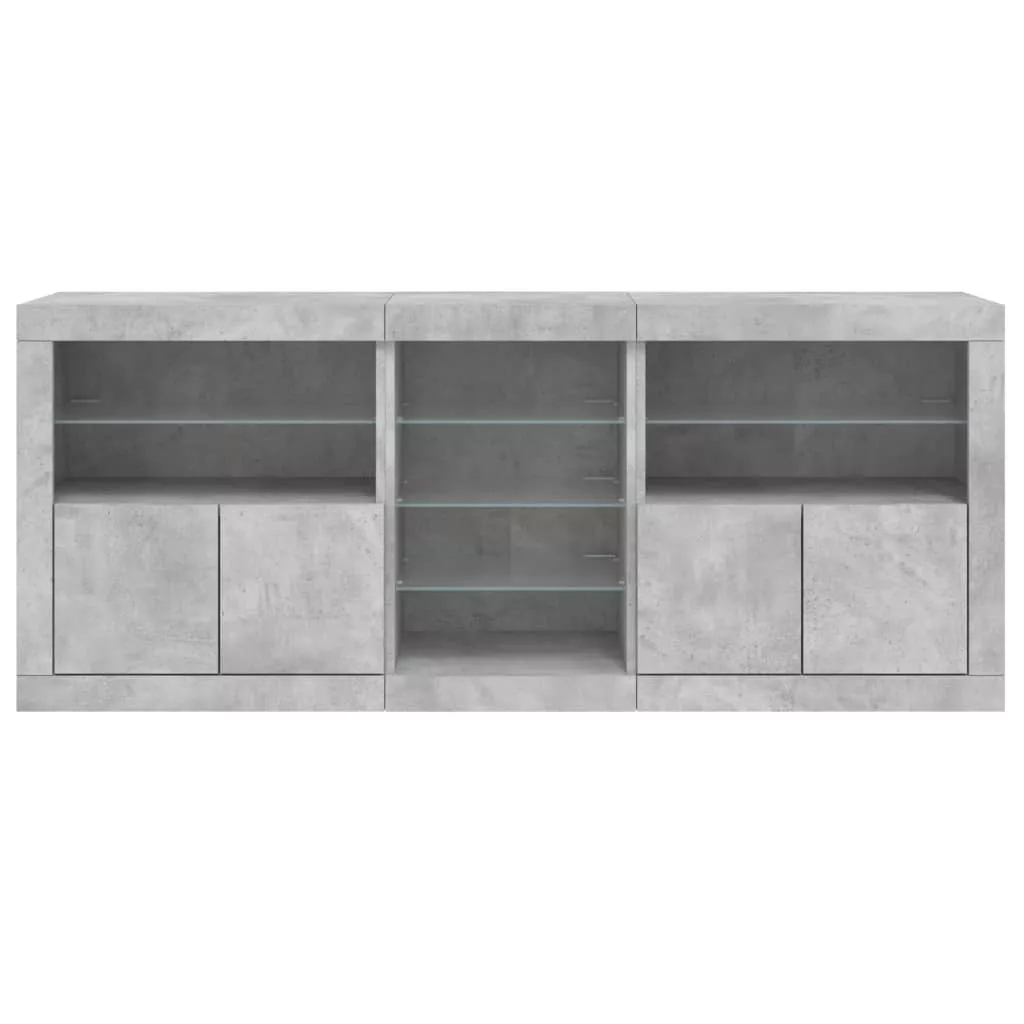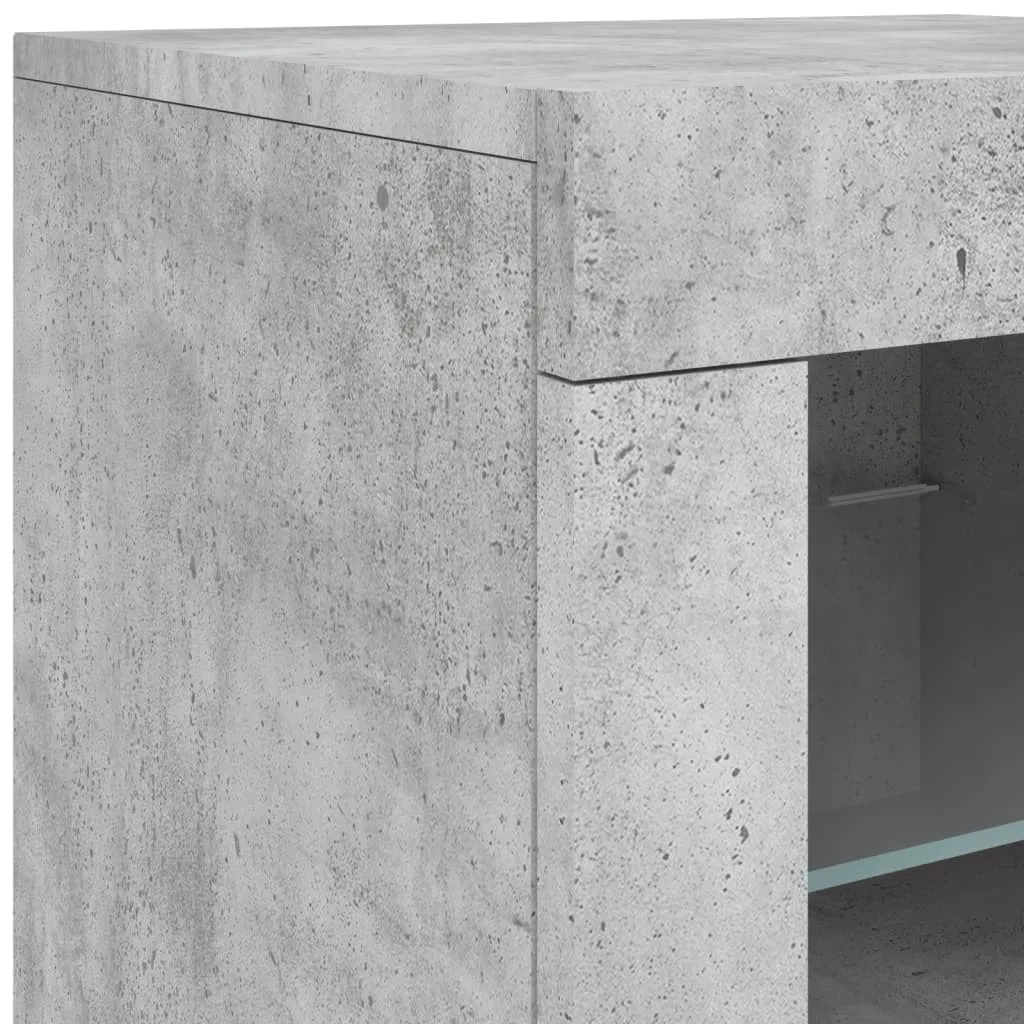 betonszürke tálalószekrény LED-világítással 181,5x37x67 cm