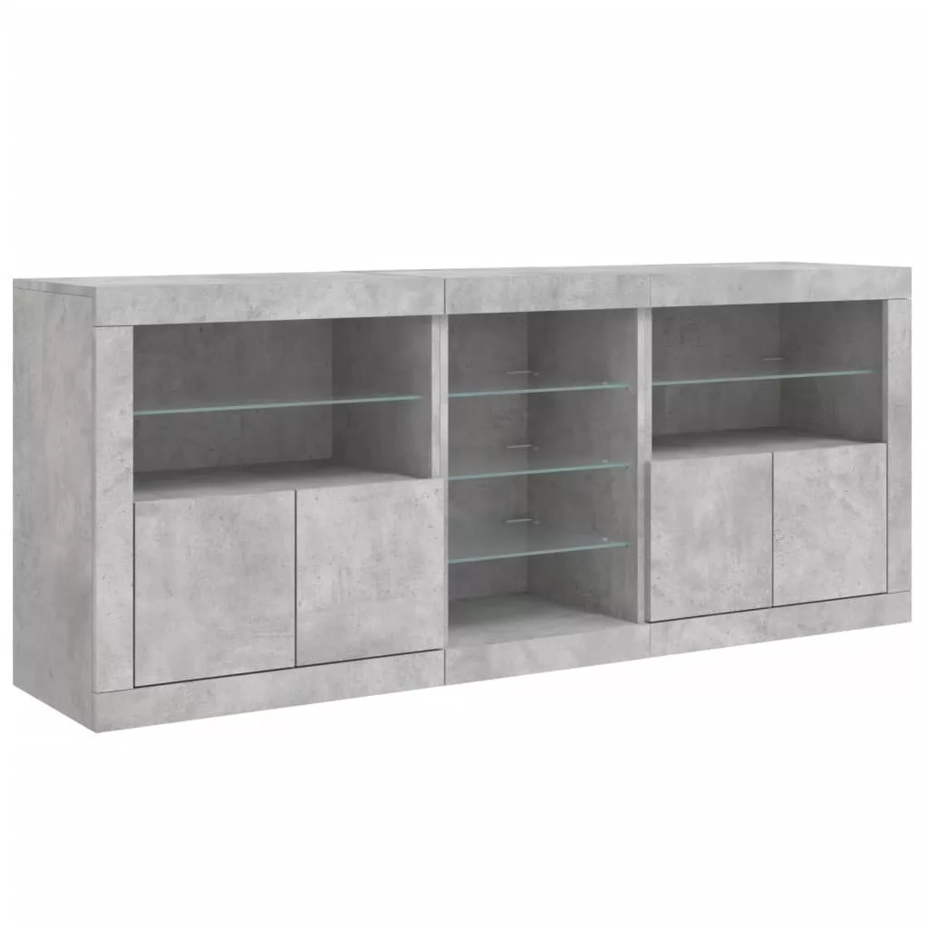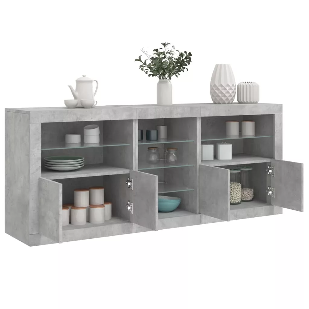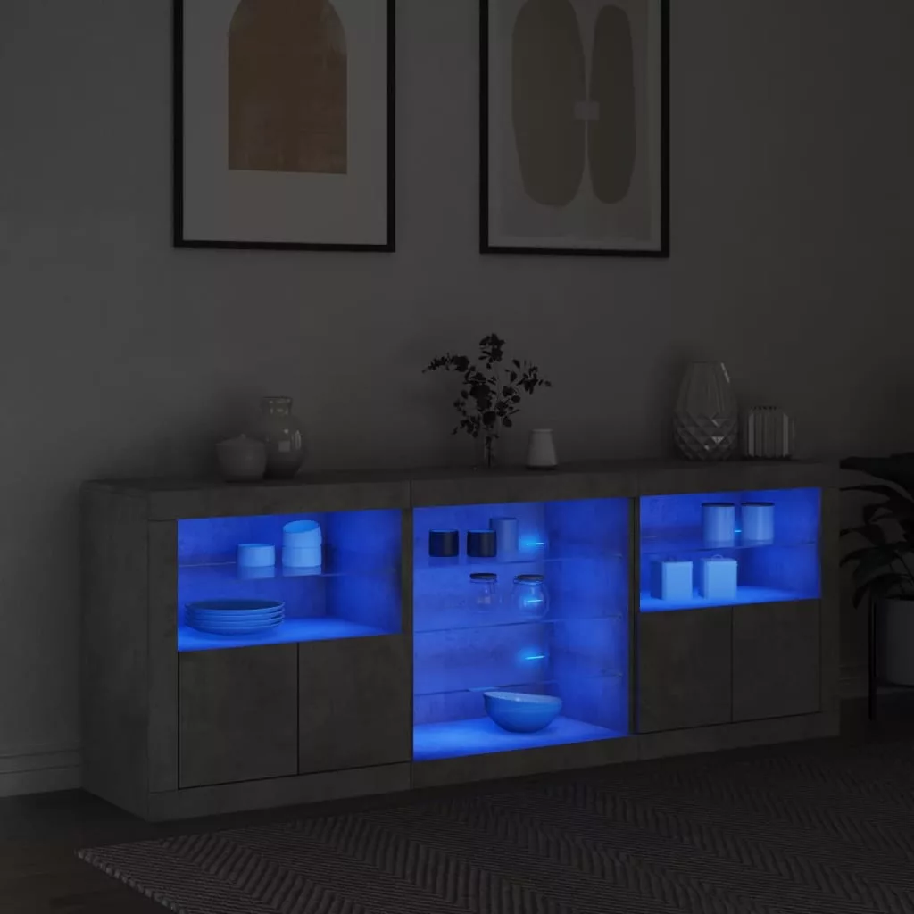 betonszürke tálalószekrény LED-világítással 181,5x37x67 cm